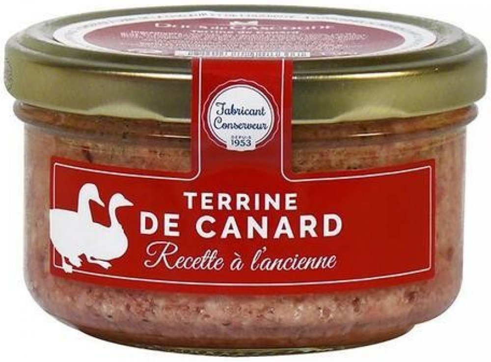 Složení: kachní maso (25%), vepřový tuk a maso, kuřecí játra, vejce, bílé víno, sůl, šalotka, koření.