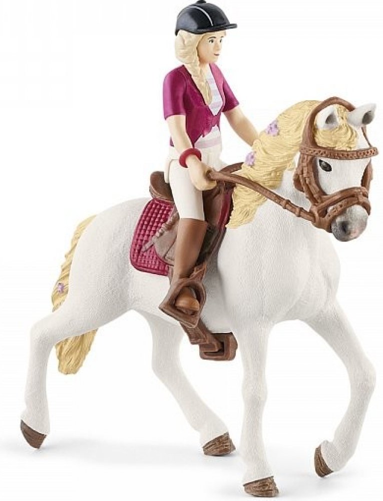 Blondýnka Sofia & Blossom ze Schleich® Horse Club prostě patří k sobě! Od jejich prvního setkání, kdy andaluská klisna do Sofie jemně strčila nosem, se staly nerozlučnou dvojicí. Figurka Sofie je plně pohyblivá a může nejen stát, ale také jezdit na koni nebo sedět na židli. Sedlo, uzda a otěže se perfektně hodí k temperamentní figurce klisny Blossom. Sofia nikdy nezapomene na svou jezdeckou přilbu a purpurový náramek Horse Clubu - jejich klubový odznak. Sada obsahuje: 1x figurka Sofia (s pohyblivými klouby), 1x klisna, 1x jezdecká přilba, 1x sedlo, 1x uzda s otěží, 1x náramek na ruku. Figurky Schleich jsou mimořádně detailní, láskyplně malované a umožňují dětem hrát si a zároveň se učit. Nevhodné pro děti do 3 let. Rozměr balení: 15 x 18 x 8,2 cm. Doporučený věk: 5-12.