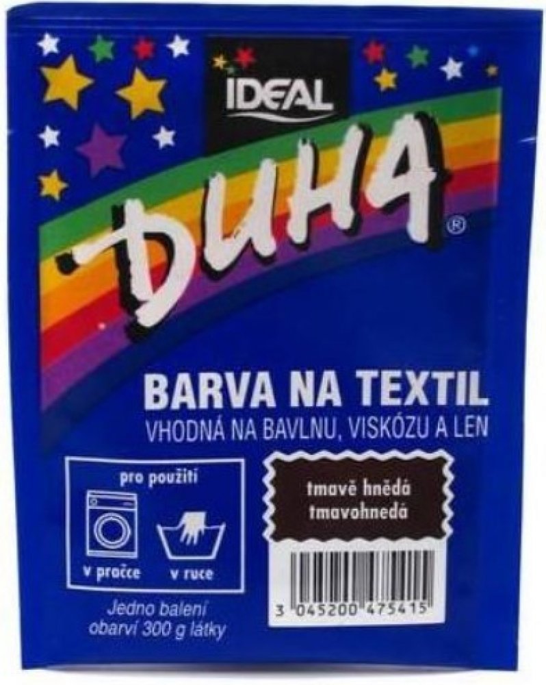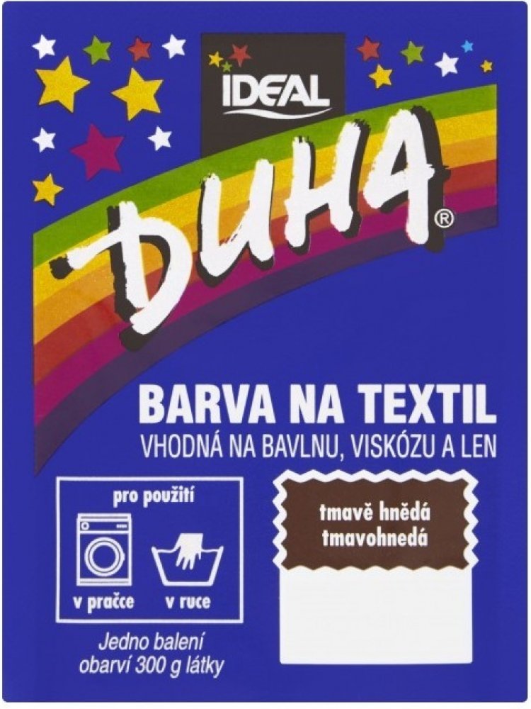 Barva na textil vhodná na bavlnu, viskózu a len. Pro použití v pračce či v ruce. Jedno balení obarví 300 g látky. Barvení v ruce: Obsah sáčku rozpusťte ve 1/4 l vroucí vody. Roztok nalijte do nádoby se 7-10 litry vlažné vody a přidejte 10 polévkových lžic kuchyňské soli (200 g). Ponořte barvenou látku do lázně, rovnoměrně rozprostřete a za občasného míchání přiveďte k varu. Udržujte takto při mírném varu 20 minut, potom odstavte a občas zamíchejte, až voda téměř vychladne. Barvenou látku potom máchejte ve studené vodě, dokud není voda čirá. Barvení v automatické pračce: Obsah sáčku rozpusťte ve 1/4 l vroucí vody a nalijte přímo do bubnu pračky. Přidejte 10 polévkových lžic kuchyňské soli (200 g). Vložte látku do bubnu a použijte program s nejvyšší teplotou (80-90°C) bez předpírání. Po ukončení cyklu látku vyjměte. Čištění pračky: Pro odstranění možných zbytků barvy nastavte program s nejvyšší teplotou (80-90°C). Přidejte do pračky minimální dávku pracího prášku a 200 ml bělícího přípravku (např. Savo Perex) spolu s kusem staré látky, který případné zbytky barvy pohltí. Bezpečnostní upozornění GHS07 - dráždivé látky Signální slovo: Varování H315 Dráždí kůži. H319 Způsobuje vážné podráždění očí. H412 Škodlivý pro vodní organismy, s dlouhodobými účinky. P101 Je-li nutná lékařská pomoc, mějte po ruce obal nebo štítek výrobku. P102 Uchovávejte mimo dosah dětí. P280 Používejte ochranné rukavice/ochranný oděv/ochranné brýle/obličejový štít. P301+P310 PŘI POŽITÍ: Okamžitě volejte TOXIKOLOGICKÉ INFORMAČNÍSTŘEDISKO/lékaře/ tel. 224 919 293 nebo 224 915 402 (24 hodin denně) P302+P352 PŘI STYKU S KŮŽÍ: Omyjte velkým množstvím vody a mýdla P305+P351+P310 PŘI ZASAŽENÍ OČÍ: Několik minut opatrně vyplachujte vodou. Vyjměte kontaktníčočky, jsou-li nasazeny a pokud je lze vyjmout snadno. Pokračujte vevyplachování.
