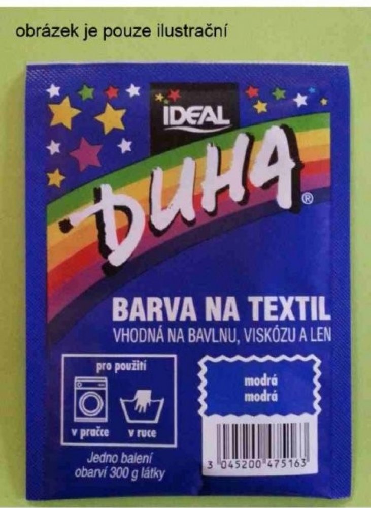 DUHA barvy na textil jsou určené ke změně barvy textilie. Jsou vhodné na barvení bavlny, viskózy a lnu. Lze je používat při barvení v ruce i v pračce. Barevn...