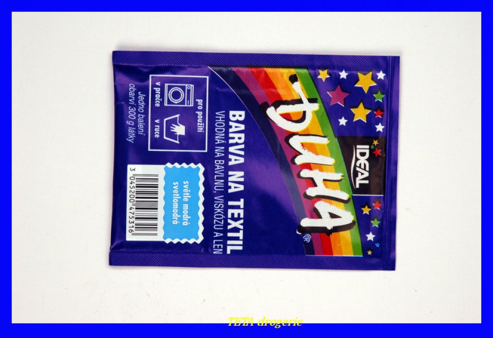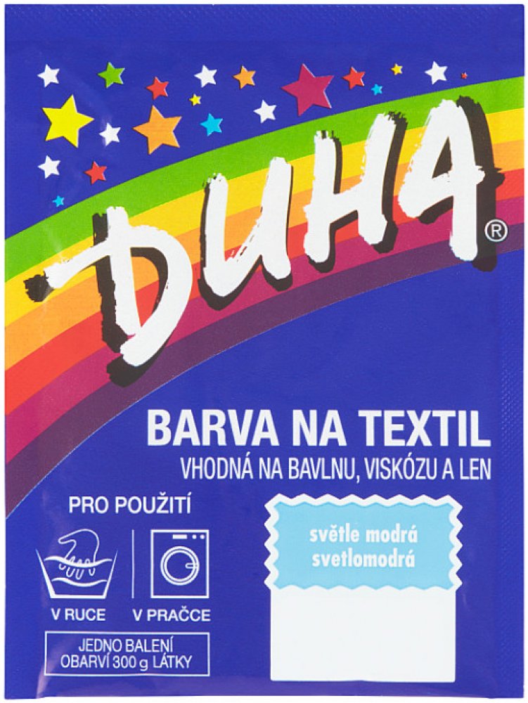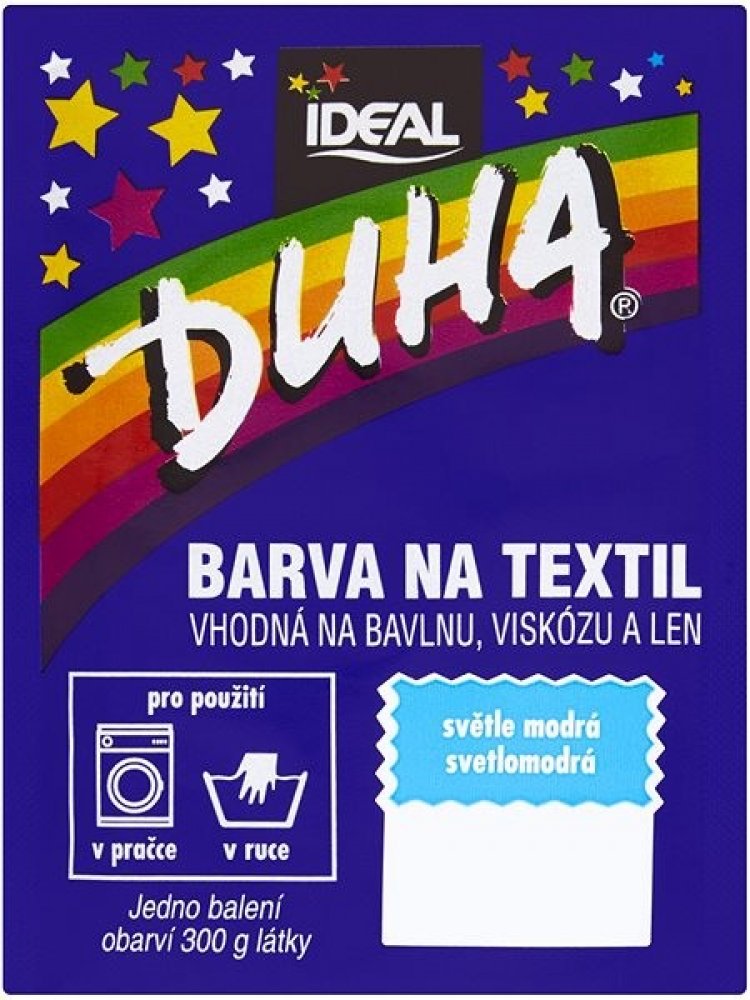 Barva na textil vhodná na bavlnu, viskózu a len. Pro použití v pračce či v ruce. Jedno balení obarví 300 g látky.