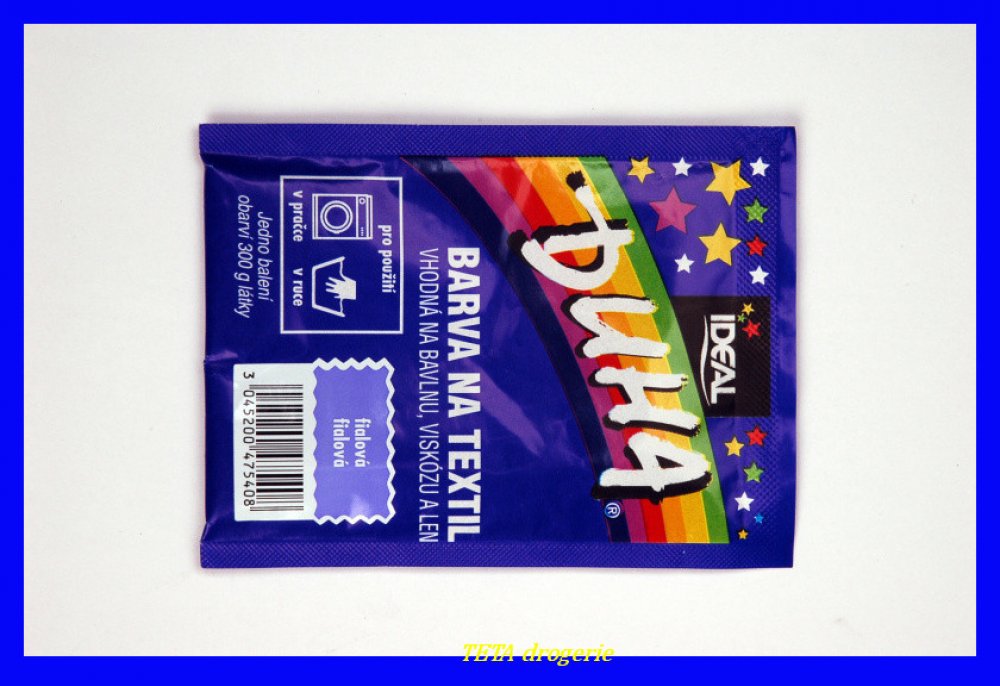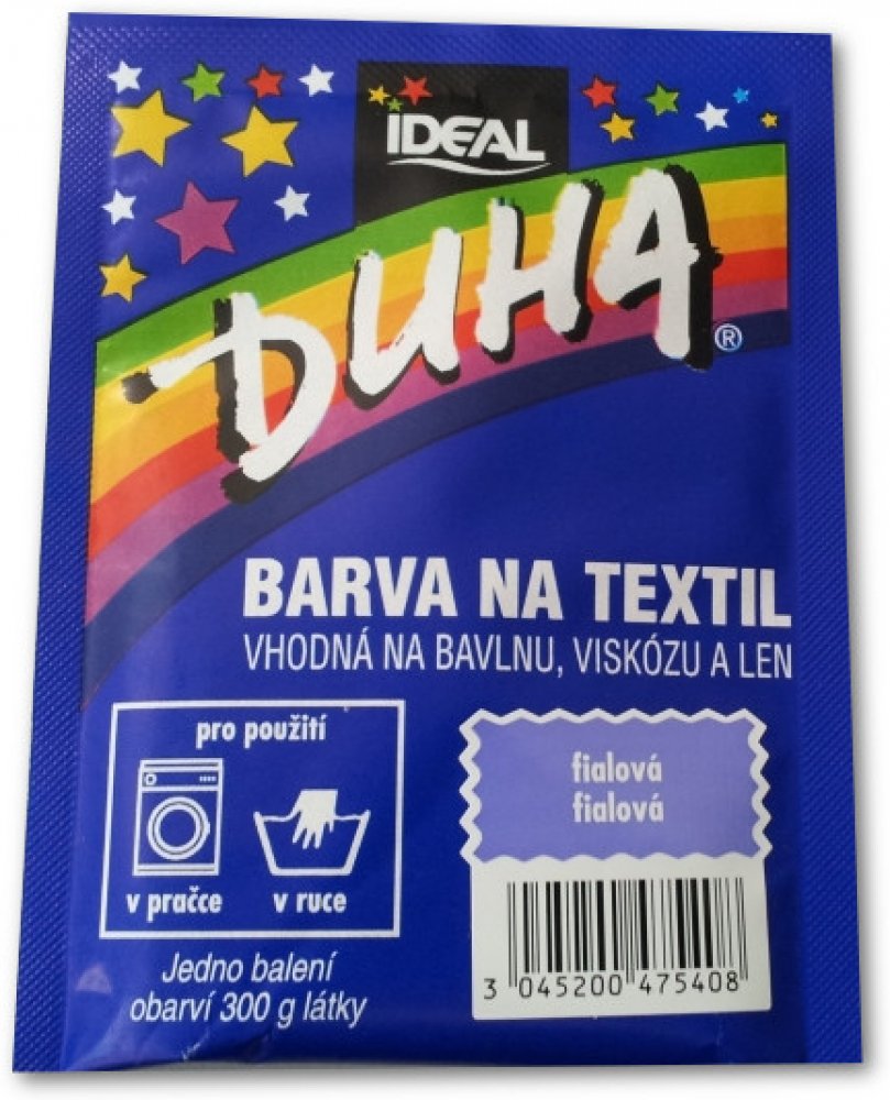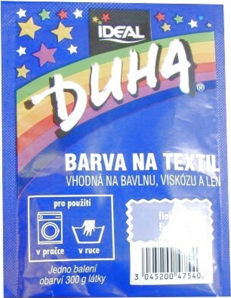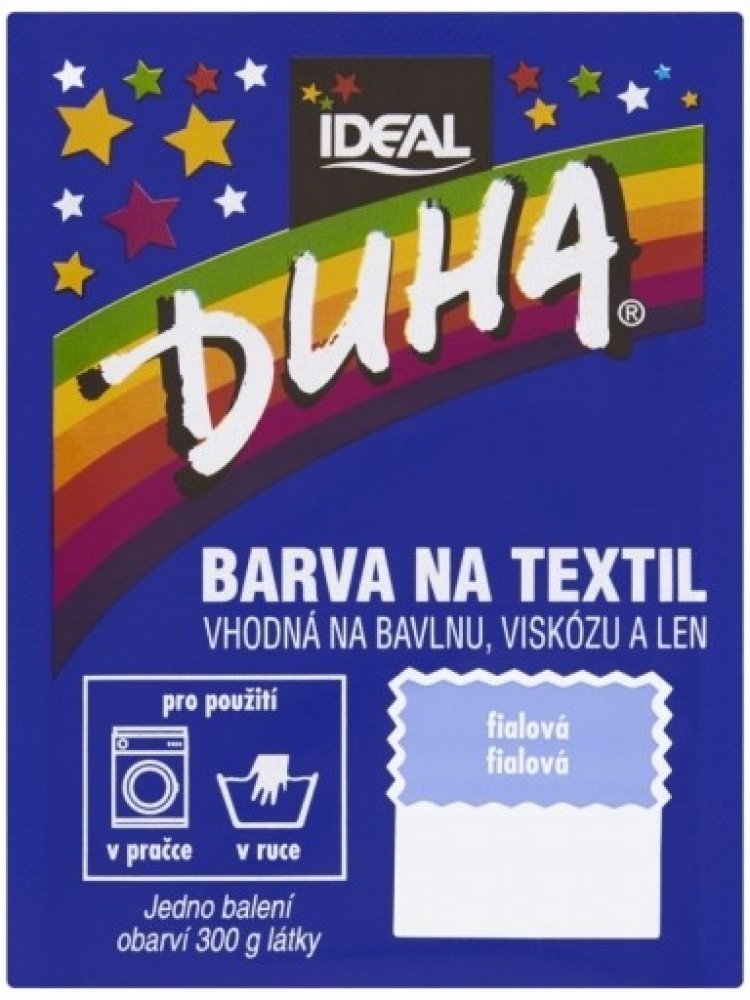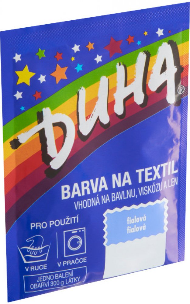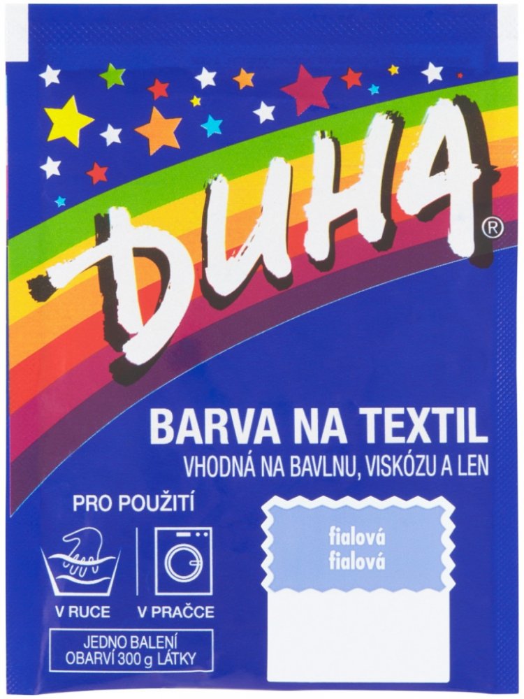DUHA barvy na textil jsou určené ke změně barvy textilie. Jsou vhodné na barvení bavlny, viskózy a lnu. Lze je používat při barvení v ruce i v pračce. Barevná škála nabízí 15 barevných odstínů, které lze mezi sebou i míchat a vytvářet tak nepřebernou škálu barev.