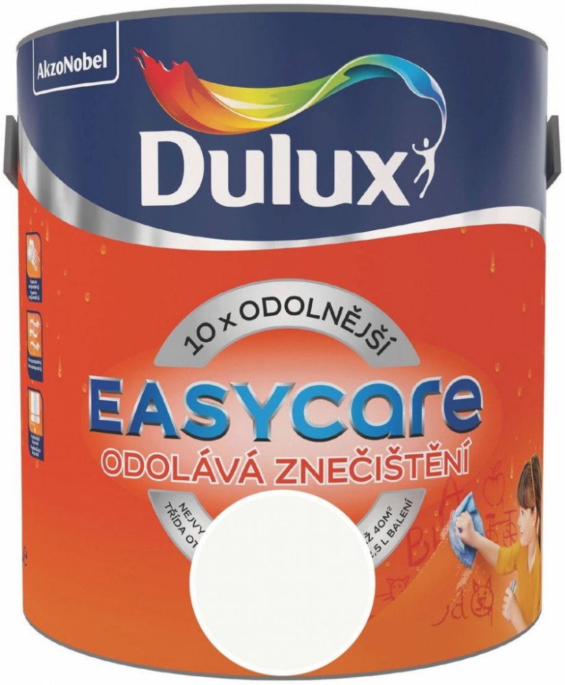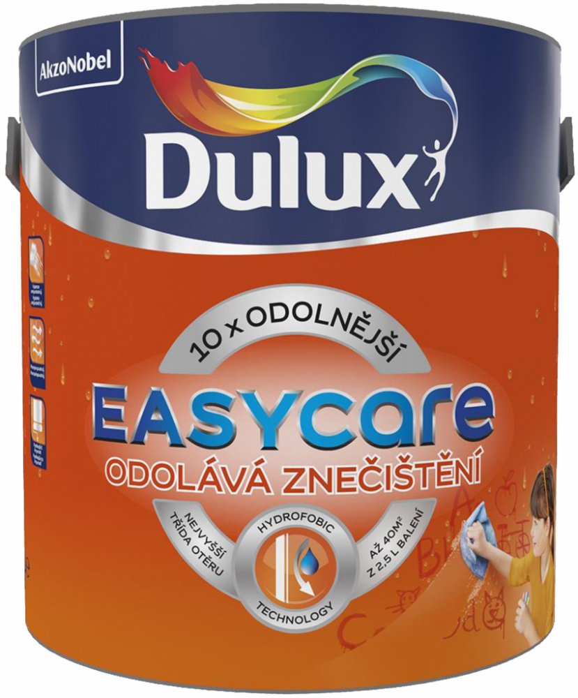 Dulux EasyCare je jednou z mála barev s populární matnou povrchovou úpravou, extrémně odolných proti zašpinění. Na malovaném povrchu vytváří dokonale matnou vrstvu a eliminuje případné nedostatky podkladu. Vytváří film s nejvyšší odolností proti vzniku skvrn, jejich odstranění je velice snadné.