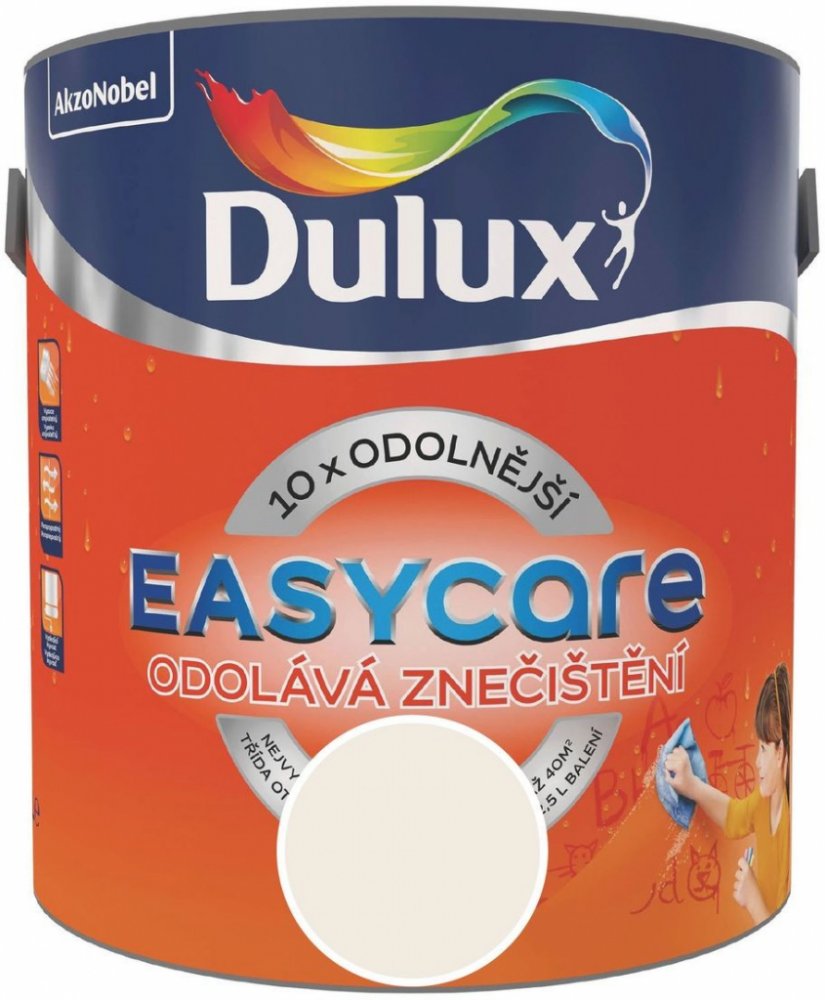 Dulux EasyCare je jednou z mála barev s populární matnou povrchovou úpravou, extrémně odolných proti zašpinění. Na malovaném povrchu vytváří dokonale matnou vrstvu a eliminuje případné nedostatky podkladu. Vytváří film s nejvyšší odolností proti vzniku skvrn, jejich odstranění je velice snadné.