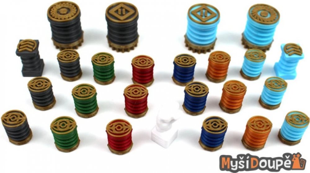 18x žeton špiona2x žeton vítězních bodů2x žeton radních2x žeton vlivu1x Feydův žeton (používá se s harkonennským vůdcem Feyd-Rauthou)