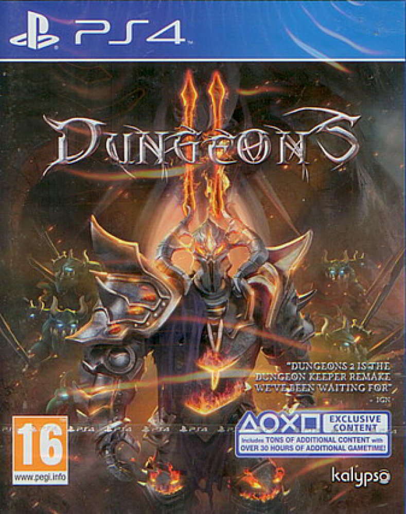 Dungeon Lord je zpět a tentokrát to myslí vážně! Uspokojte nenasytnou touhu Dungeon Lorda po pomstě ve hře Dungeons 2 náborem hrůzostrašných nových monster ze všech koutů podsvětí, aby mohli provést jeho rozkazy. Ovládnutí podsvětí ale už nestačí, tentokrát Dungeon Lord rozšíří svou nadvládu i na bezvýznamné lidské bytosti a pokusit se dobýt i povrch! Ovládejte mocného Dungeon Lorda a vybudujte síť jedinečných a děsivých dungeonů, regrutujte armádu hrůzostrašných tvorů a velte dvěma novým frakcím. Připravte se bránit své království před těmi otravnými hrdiny, vydejte se na povrch vést válku proti jejich lidským městům a s použitím ruce teroru přímo ovládejte svých přisluhovačů, vydávejte jim příkazy a dokonce i rozdávejte rychlé facky. Rozsáhlá příběhová kampaň obsahuje ještě více černého humoru, který udělal z původní hry Dungeons herní hit a obsahuje četné odkazy na různé fantasy knihy, filmy a seriály. Navíc si můžete vyzkoušet své síly ve čtyřech různých herních režimech v multiplayerovém režimu až pro čtyři hráče s jinými Dungeon Lordy lokálně, nebo online. Edice Dungeons 2 pro konzole PlayStation 4 obsahuje exkluzivní dodatečný obsah"Pixieville","Morningwood","A Chance of Dragons","Song of Fire and Sands" a"a clash of Pumpkins" s novými mapami, tunou nových nepřátel a více než 30 hodinami bonusového hracího času. Díky vzrušující singleplayer kampani s 2 hratelnými frakcemi, 26 unikátními tvory, různými typy hrdinů a herními režimy je Dungeons 2 simulačního manažerská hra, na kterou jste čekali. Dungeons 2 nabízí unikátní hratelnost. V podsvětí je to manažerská simulace a na povrchu taktická real-time strategie. Díky ruce teroru máte neustálou kontrolu nad svými přisluhovači a můžete zadávat cílené rozkazy. Jste znudění z temnoty podsvětí? Vydejte se na povrch a zanechte krásná města lidí v troskách. Čtyři kompetitivní multiplayerové režimy až pro čtyři hráče lokálně, nebo online.
