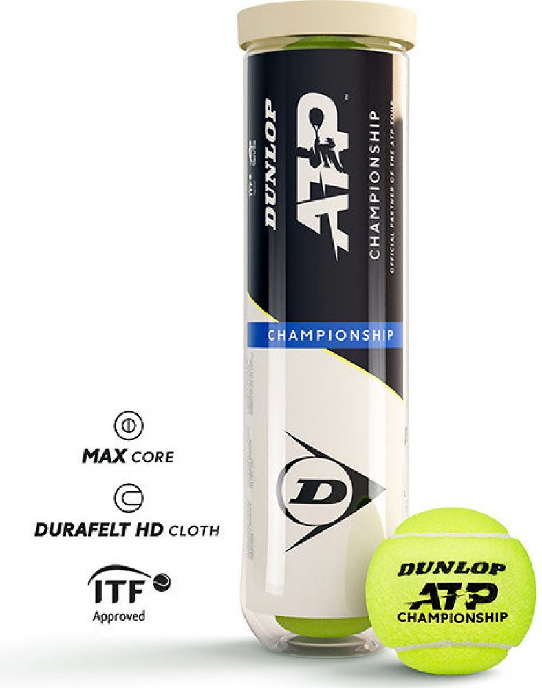 Tenisové míčky Dunlop ze série Championship jsou ideální pro rekreační tenisty. Míč je velmi pevně vyrobený, bude se skvěle hodit na jakýkoli povrch. Schváleno ATP Tour. Díky Max Core a tkanině Durafelt HD je míč extrémně odolný. Balení obsahuje čtyři míčky.