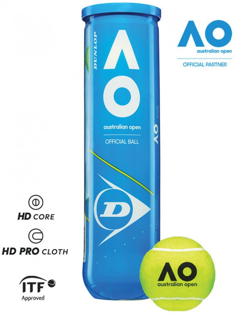 Dunlop Australian Open - 4 ks. Od roku 2019 je Dunlop oficiálním partnerem turnaje Grand Slam - Australian Open. U této příležitosti byl pro nejnáročnější hráče vytvořen model míčku - Dunlop Australian Open. Péče o provedení a vysoce kvalitní materiály použité v procesu výroby zajišťují špičkový výkon. Při konstrukci míčků byl použit osvědčený v předchozích modelech jádro HD Core a speciální plsť ...