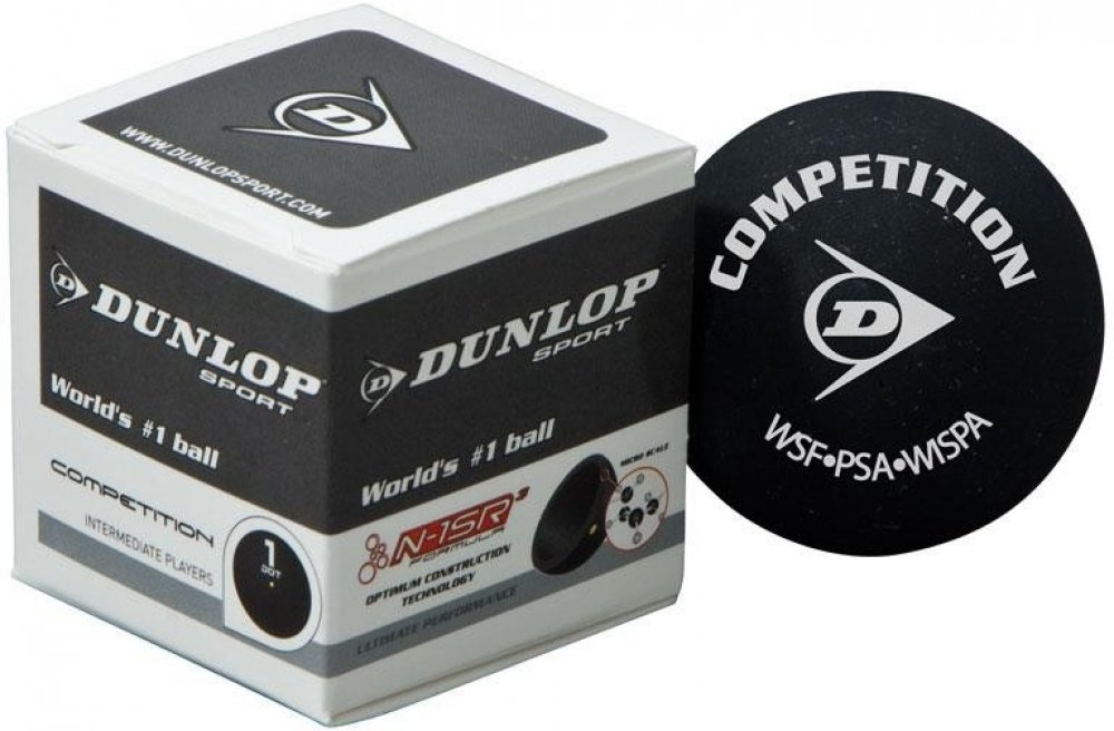 Squashová lopta Dunlop Competition je štandardnej veľkosti. Absorbuje o 20% menej odrazovej energie a vďaka tomu je ľahšie ju udržať dlhšie v hre.