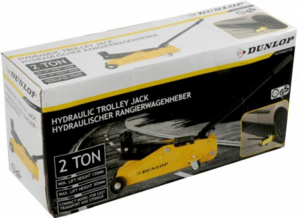 Tento mobilní zvedák má 2 pevná kolečka a 2 otočná kolečka, takže jej můžete snadno přemisťovat. Navzdory své kompaktní konstrukci stojí zvedák pevně na zemi a má velkou volnost pohybu díky kuličkovým ložiskům v kolech. Takto můžete snadno a rychle vyměnit pneumatiku. Stručně řečeno, tento hydraulický zvedák Dunlop je ideální zvedák, pokud potřebujete jednou nebo každý den vyměnit pneumatiku. Specifikace hydraulického zvedáku pro auta Dunlop Typ: hydraulický trolejový zvedák Kapacita: 2000 kg (2 tuny) Minimální výška zdvihu: 135 mm Max.výška zdvihu: 305 mm Kompaktní model Mobilní se 2 pevnými a 2 otočnými koly Délka 44 cm x šířka 12,5 cm x výška 13 cm Délka rukojeti: cca 42,5 cm