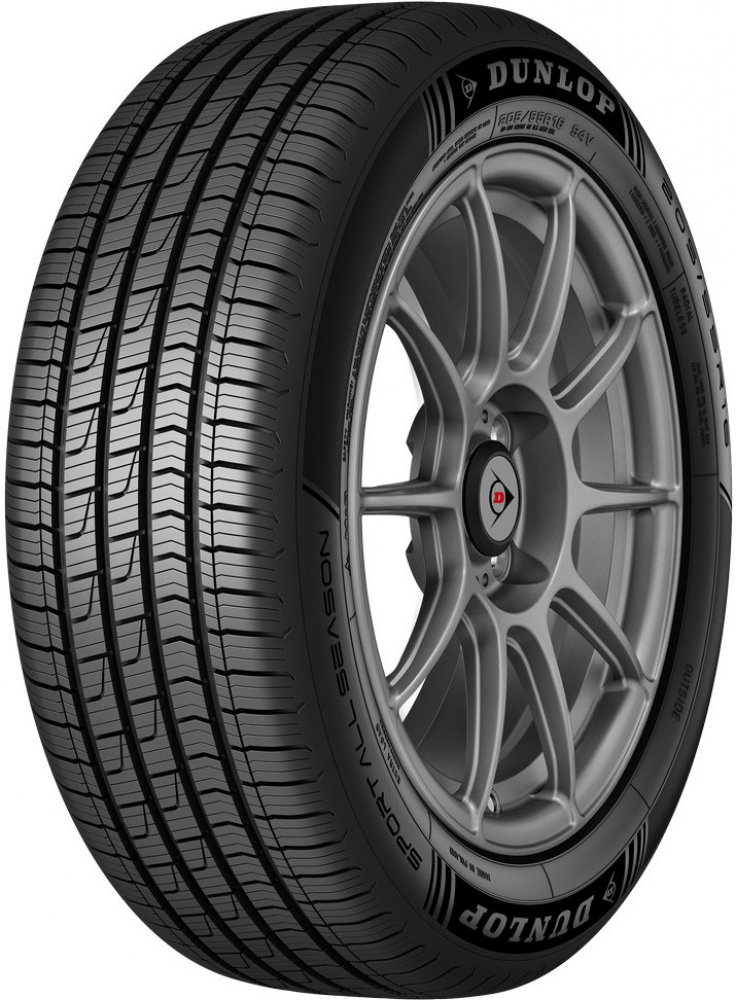 Celoroční pneumatika Dunlop SPORT ALL SEASON 195/65 R15 T91. Dunlop SPORT ALL SEASON 195/65R15 91T je celoroční pneumatika navržená pro každodenní použití v osobních vozech v proměnlivém podnebí. Produkt cílí na řidiče, kteří potřebují spolehlivost po celý rok bez nutnosti sezonní výměny. Konstrukce kostry pneumatiky je vyvážená pro městský i dálniční provoz a nabízí vyhovující kilometrový výkon bez nadměrného opotřebení. Přínos pro uživatele spočívá v sti a dlouhodobé stabilitě. Dezén běhounu kombinuje bloky a obvodové drážky pro efektivní odvod vody a lepší přilnavost na mokru. Běhounová směs je optimalizovaná pro širší teplotní rozsah, což snižuje valivý odpor a zároveň udržuje přilnavost za deště. Díky rovnoměrnému opotřebení a vyvážené konstrukci je zajištěna stabilita v zatáčkách a dobré brzdné vlastnosti. Pneumatika přináší klidný jízdní komfort a předvídatelné trakční schopnosti při běžném provozu.