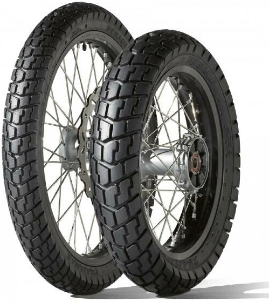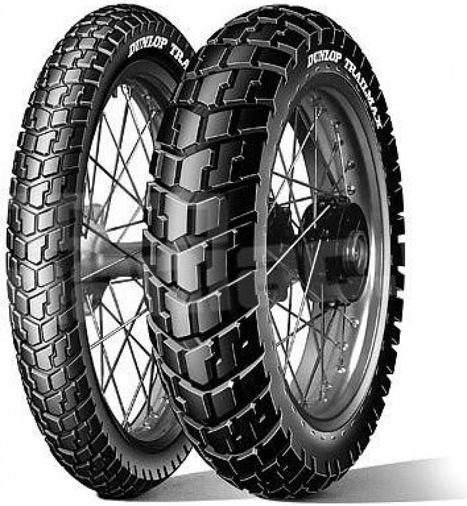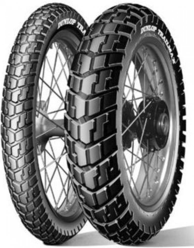 Motopneu Dunlop TRAILMAX 90/90 R21 H54. Dunlop TRAILMAX 90/90R21 54H je motocyklová pneumatika určená pro kombinaci silničního a lehčího terénního použití u trail a enduro strojů. Konstrukce pláště poskytuje jistotu při přenášení tažné síly a dobré trakční schopnosti při rozjezdu i v terénu, přičemž kostra pneumatiky je navržena pro odolnost a stabilní vedení v zatáčkách. Dezén běhounu byl vytvořen pro univerzální využití a zlepšenou přilnavost v různorodých podmínkách. Trakční schopnosti jsou optimalizované pro plynulé přechody mezi povrchy.Běhounová směs a uspořádání bloků umožňují efektivní odvod vody a podporují rovnoměrné opotřebení při kombinovaném provozu. Díky citlivému naladění obtiskování do podkladu se zlepšuje brzdná dráha na mokrém povrchu a současně zůstává jízdní komfort na slušné úrovni. Pneumatika je vhodná pro jezdce hledající kompromis mezi výdrží a ovladatelností.