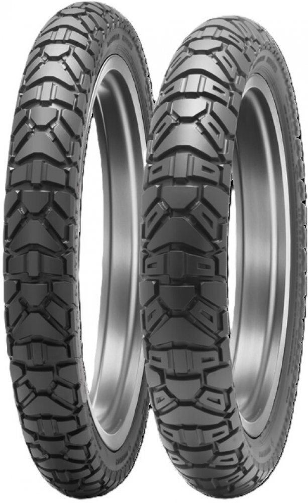 Trailmax Mission - novinka 2020.Trailmax Mission byly vyvinuty pro jízdu na dlouhé vzdálenosti. Jsou ideální pro jezdce; kteří na adventurách překonávají dlouhé vzdálenosti na silnici; ale přitom požadují i dostatečně hluboký běhoun a užitné vlastnosti pro jízdu v terénu v cíli své cesty. Jedním z jeho hlavních cílů byla odolnost. Vlastní testy Dunlopu prokázaly; že jezdci mohou očekávat ve srovnání s některými pneumatikami konkurenčních značek až dvojnásobný kilometrový proběh. Vyráběná verze zadních pneumatik Mission při testech prokázala životnost 12 800 kilometrů; což je pro pneumatiku s takovými terénními vlastnosti skutečně velmi působivé číslo.K významnému zlepšení užitných vlastností předních i zadních pneumatik přispívá technologie Dunlop Staggered Step Technology. Stupně propůjčují běhounu větší tuhost a stabilnější výstupky omezují jeho ohyb a vytvářejí více záběrových hran tím způsobem; že po částečném opotřebení běhounu vystoupí na povrch další hrana; která se může znovu opřít do terénu. Pneumatiky Mission mají výrazné výstupky; které jim dodávají potřebnou tuhost a odolnost ve skalnatém terénu; umožňují jízdu v terénu pod nižším tlakem a pomáhají jezdcům zdolávat hluboké a nerovné vyjeté koleje. Bočnice pneumatik byla posílena tak; aby se zvýšila jejich životnost a odolnost proti proražení. Pneumatiky Mission přicházejí na trh v rozměru 19" a 21" vpředu a 17" a 18" vzadu; aby mohly sloužit modelům jako je Honda Africa Twin; Suzuki V-Strom; BMW GS; KTM 1290/1290S; 790R/790S; Yamaha Ténéré; Triumph 800/900/1200 a řadě dalších.
