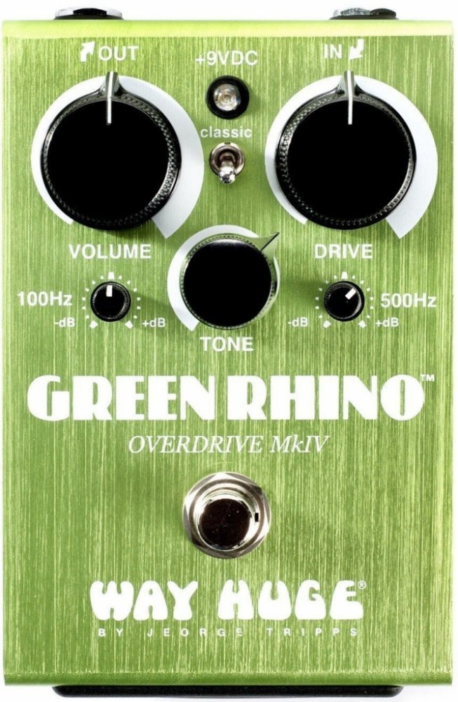 Pedálový efekt typu Overdrive. Green Rhino Mk IV je 4. verzí známého overdrive pedálu, který přináší několik změn. Kromě kompaktnější velikosti je vybaven o dvě tonální funkce, které mají velký vliv na středové a basové frekvence. Přední panel nabízí klasické ovládací prvky Volume pro nastavení hlasitosti, Drive pro nastavení úrovně zkreslení, Tone pro tónovou clonu a dva nové potenciometry, které nabízejí boost nebo cut až 12dB ve frekvenčním pásmu 100Hz a 500Hz. Tato novinka umožňuje detailnější nastavení frekvenční odezvy pedálu. Pro fanoušky původní verze je zde přepínač Classic, který poskytuje zvuk klasického Green Rhina. Pedál je samozřejmě vybaven kvalitním True Bypass spínáním a napájí se pomocí 9V baterie nebo adaptéru, který není součástí balení.