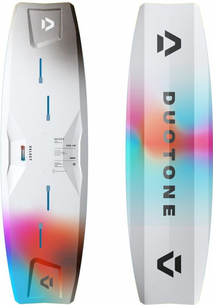 Duotone Select 2025 Dokonalý freeride board značky Duotone, nástupce oblíbeného X-Ride. Prkno je tvarově podobné dražšímu modelu Select SLS, jen v levnějším materiálovém provedení. Získáváte tak velmi podobné jízdní vlastnosti za nižší cenu. Select je určen především pro freeride, design prkna umožňuje velmi dobré spojení s vodou a poskytuje tak dokonalou kontrolu za jízdy a v otočkách. Step mono concave spodek zaručuje rychlost a velmi snadný skluz. Nižší váha prkna díky ověřené technologii Space Flex. Dokonalý POP při odrazu a měkké dopady dělají Select výbornou deskou pro old school a board off tricky. Select je měkčí, díky čemuž líp zpracovává chop a poskytuje tak velice pohodlnou jízdu. Je nejrychlejším prknem z celé nabídky twintupů Duotone, a nejvíc ze všech vyhovuje taky do vln, pokud vás to napadne zajezdit s twintipem, a nemáte po ruce surfboard :) Prkno je lehčí oproti loňskému modelu 2024! Tabulku velikostí (včetně váhy) naleznete níže v popisu produktu. Nově Select 2025 má taky asymetrický tvar, díky kterému je snížena deformace prkna za jízdy podel hlavní osy, takzvaný Torsion Flex. Zadní hrána je tužší, což přispívá k lepšímu low-endu, stoupavosti a jednodušším odrazům. Přitom celkově prkno zůstalo stejně měkké jako starší modely. Nový větší asymetrický Space Flex na špičkách prkna. Další novinkou je použití recyklovaných materiálů při výrobě, v případě Duotone Select se jedná o materiál Flex Fiber. Ekologické produkty Duotone dostali označení Concept Blue. Technické charakteristiky Duotone Select 2025: lehčí váha oproti loňskému modelu asymetrický tvar, díky kterému je snížen Torsion Flex; větší a asymetrický Space Flex; space flex technologie snižuje celkovou váhu prkna a stabilizuje prkno v podmínkách čopu; Concept Blue- prkno je vyrobeno z recyklovaného materiálu Flex Fiber; dokonalé freeride prkno; soft flex; carbon beam konstrukce taky snižuje váhu prkna a poskytuje výborný pop při odrazu; step mono concave; grab rails pro pohodlné board off tricky; Pozor! Prkno je dodáváno pouze se setem flosen. Combo (pady, poutka, grab handle, šrouby) se musi dokoupit jako samostatná položka. Na výběr jsou 2 základní možnosti: Duotone Vario- pohodlné vázání za výhodnou cenu. Duotone Entity- exkluzivní vázání s unikátním systémem, díky kterému ho můžete nastavit přesně na míru a nikdy se vám za jízdy neotevře. Velikost 135/39 138/40 141/41 144/42 Váha jezdce (kg) 55-75 70-85 75-90 >85 Flosny 4,5 Glass 4,5 Glass 5,0 Glass 5,0 Glass Váha prkna (kg) 2,335 2,39 2,565 2,820