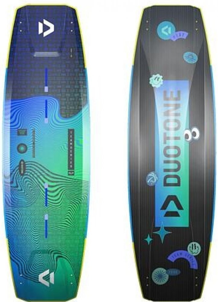Kiteeboard Duotone Team Series SLS 2023 Konstrukce: biax carbon a Innegra SLS, new suspension flex cap, reflex tips, single diffusor bottom with grind base, step double concave wide channels. Hard flex, doporučené vázání: Boty. Vyráběno ve špičkové rakouské snowboardové fabrice CAPITA Team je nekompromisní wakestyle board s bombastickým popem, prkno je hodně tvrdé, ale se skvělými torzními vlastnostmi umožňujícími měkké dopady, má minimální reverse flex. Dopady jsou nyní příjemnější díky updatovanému diffusor bottom shapu, spodní strana boardu je vybavena grindbase povrchem pro zvýšení odolnosti. Hard flex pro výbušný POP, vyztužené šíny pro maximální pevnost Team je stejně jako všechny DUOTONE boardy dodáván pouze s flosnami (a šrouby k flosnám, samozřejmě) a zbytek (tedy pady, poutka, grabhandle) si může každý zákazník vybrat podle náročnosti, preferencí a v neposlední řadě i podle toho jak hluboko má do kapsy. Prkno lze samozřejmě osadit čímkoliv, ale pokud chcete využít všech možností a vychytávek, které systém Duotone nabízí, vyberete si k prknu jedno ze dvou "comb", buď exklusivní "Entity", nebo levnější "Vario". V obou případech tím zkompletujete prkno tím nejlepším možným způsobem, v případě použití Entity comba pak způsobem naprosto exklusivním, které nemá na trhu konkurenci. Pro bližší informace prosím prohlédněte jednotlivá comba v detailu, jsou uvedena v souvisejících položkách. Profící osazují board botami (nejlepší jsou samozřejmě boty Duotone). Díky mosazným kamenům v šínách se závity M6 je montáž padů a poutek dětskou hračkou, kterou zvládne každý během několika sekund, navíc v případě potřeby odstrojení boardu stačí vycvaknout polyamidové špunty na konci šín, povolit šrouby a celý pad i se šrouby včetně kamenů vysunout do strany a oddělit od prkna. Opačným postupem pak během několika sekund provedete zpětnou motnáž v opačném směru. Geniálně jednoduché a funkční, zvlášť při přepravě letadlem a nedostatku místa v kitebagu. V ceně prkna jsou tedy pouze flosny ( 4x S-BEND WK 3,5 cm Carbon 30) a šrouby k flosnám, pro finální kompletaci boardu musíte dokoupit ještě combo - buď levnější Vario, nebo exklusivní Entity, nebo boty. Pro tento kiteboard doporučujeme jednoznačně boty nebo Combo Entity - jen s tímto exklusivním vybavením plně využijete všechny možnosti, které Vám tento špičkový twintip nabízí !!