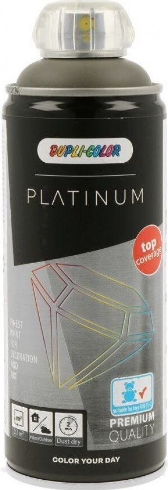 Barva ve spreji Dupli-Color Platinum se výborně hodí k dekoračním postřikům dřeva, kovů, tvrdých plastů, skla i tapet, a to venku i vevnitř. Je možné ji aplikovat na barevné odstíny sprejů Dupli-Color Platinum. Mimořádně dobře kryje, má výbornou přilnavost a extrémně rychle schne. Po vytvrdnutí zanechává polomatný povlak, který odolá škrábancům i rýhám, nárazům, otřesům a světlu. Současně nežloutne a zachovává si barevnou stálost. Při nanášení vytváří jen minimum mlhy a má neutrální zápach. Vyvážený tlakový systém umožňuje použití vyměnitelných trysek (nejsou součástí balení). Sprej před použitím protřepejte a aplikujte několik tenkých křížových vrstev v intervalu dvou minut ze vzdálenosti cca 25 cm.