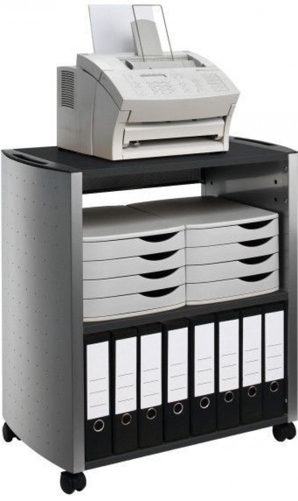 Multifunkční vozík se 2 vestavěnými policemi a jednou střední nastavitelnou policí • Pro archové soubory A4 a kancelářský hardware • Dekoračně perforované boční prvky vyrobené z vysoce kvalitní oceli jsou pokryty epoxidovou pryskyřicí • Dřevěné police - antracitově zbarvený melanin, který chrání proti poškrábání • Dekoračně zakřivené kovové panely s dekorativním perforovaným efektem • Rukojeť na obou stranách. Plně mobilní, vybavené 4 kolečky, 2 s brzdou pro stabilitu během používání • Dodáváno rozložené, plochý balík s montážními pokyny • Rozměry (V x Š x H): 820x575x380 mm.
