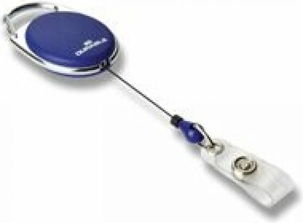 Oválný naviják s poutkem na druk pro připevnění jmenovek, průkazových kartiček atd. S upevněním kovovým klipem. Délka navíjení 80 cm.