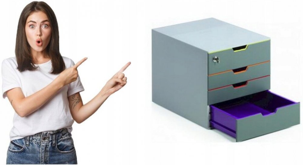 Atraktivní, inovativní zásuvková skříň se 4 barevnými zásuvkami z vysoce kvalitních plastů. Horní zásuvka je uzamykatelná cylindrickým zámkem pro ukládání důvěrných dokumentů a osobních věcí.