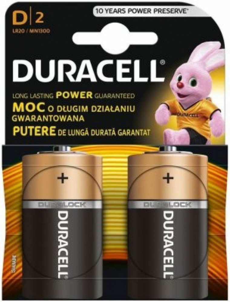 DURACELL Basic D 2 kusy Baterie Duracell Basic jsou víceúčelové alkalické baterie, které lze použít pro běžná zařízení. Úplné uzavření horní části pomocí nylonu pomáhá zabránit vytečení baterie. Technologie Duralock udržuje nepoužité baterie Duracell nové a nabité až 10 let při běžném skladování. Balení obsahuje 2 kusy. Jednorázové kusy. Nejsou určeny k nabíjení. ZÁKLADNÍ TECHNICKÉ ÚDAJE Formát: D...