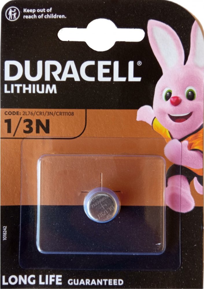 Knoflíková lithiová baterie Duracell Lithium DL 1 / 3N BL1 typu 1 / 3N je určena především do menších zařízení jako digitální fotoaparáty, kalkulačky, tachometry, měřiče tepu, kamery, alarmy, čelovky, hračky, klíče od auta a pod.