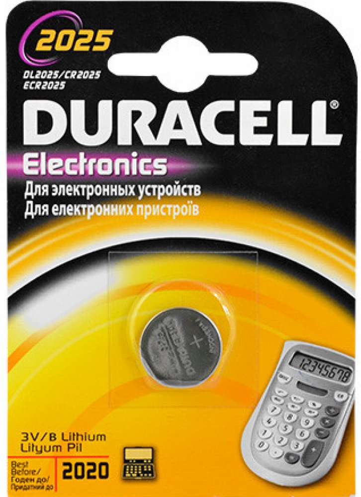 Knoflíková lithiová baterie Duracell Lithium DL2025 BL1 především do menších zařízení jako digitální fotoaparáty, kalkulačky, tachometry, měřiče tepu, kamery, alarmy, čelovky, hračky, klíče od auta a pod. Typ: lithiová knoflíková baterie Napětí: 3 V Kapacita: 165 mAh Typ baterie: Jednorázová Jiné označení: CR2025, SB-T14, 280-205 1 ks