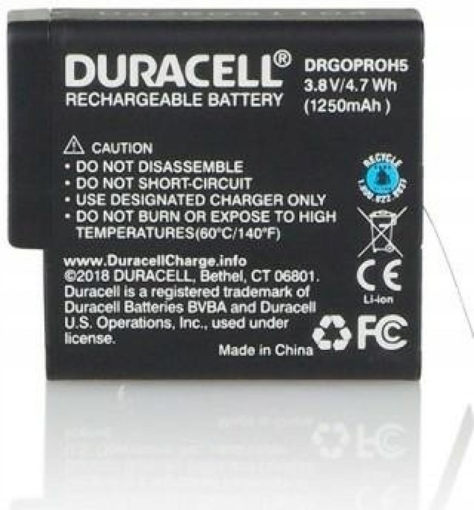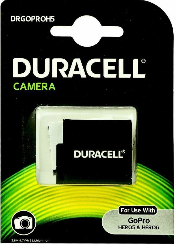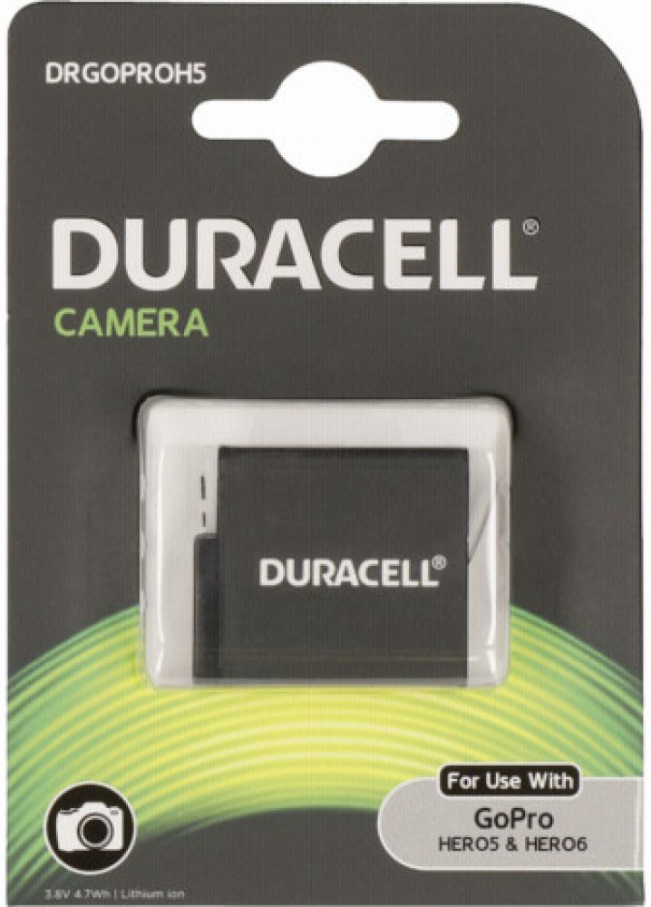 SPECIFICATIONS PSA PNo: DRGOPROH5-X2 Warranty 3 Years Function battery performs Camera , Power battery for cameras Battery Chemistry Lithium ion , Newer type of rechargable, giving best performance for a rechargable. Number of Cells in Battery 1 Cells Voltage 3,8 V Capacity 1250 mAh Watt hours 4 Wh Weight 46 g Dimensions 35 mm x 31 mm x 11 mm Shape Rectangular Colour Black Brand Name Duracell branded product.