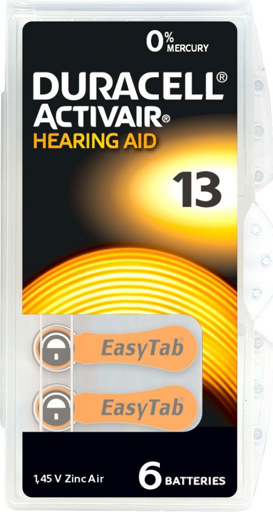 Baterie do naslouchadel Duracell DA13 nový model s technologií Duralock.