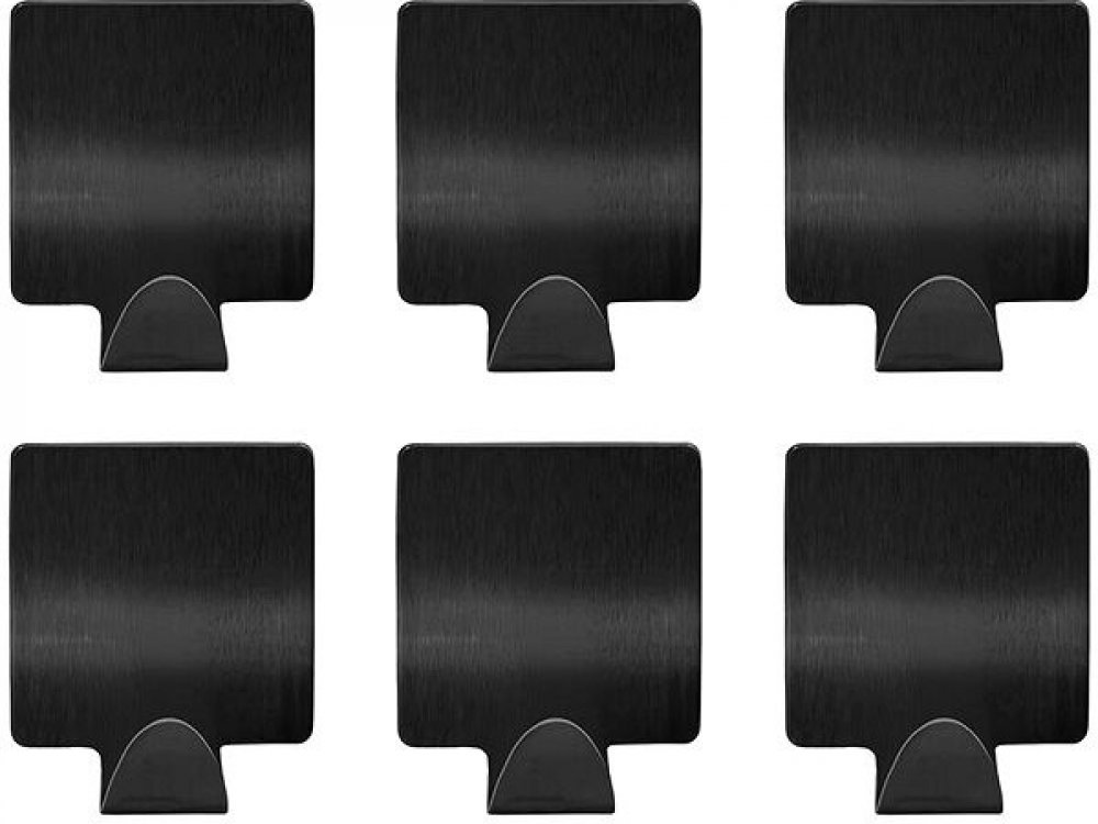 DuraHome Koupelnový háček samolepicí, černý 6 ks, čtvercový