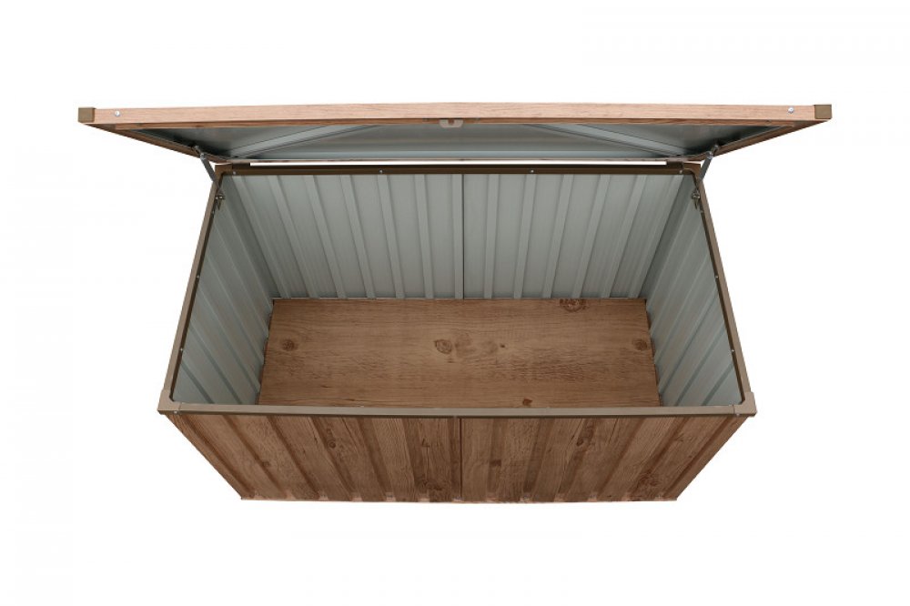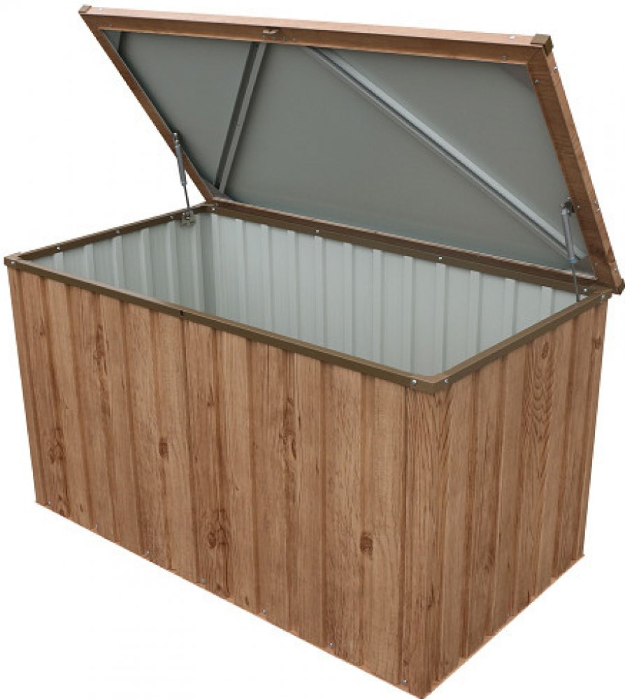 Zahradní box Duramax 585 l je ideálním úložným prostorem pro zahradní vybavení. Ať už se jedná o polstry k zahradnímu nábytku, zahradní nářadí, grily a grilovací náčiní, bazénové příslušenství nebo hračky, všechno hravě uložíte.Povrchová úprava žárovým zinkováním a práškovým nástřikem je zárukou dlouhé životnosti boxu a to takřka bez nutnosti údržby. Barevné provdení evokující dubové dřevo skvěle doplní každou terasu.