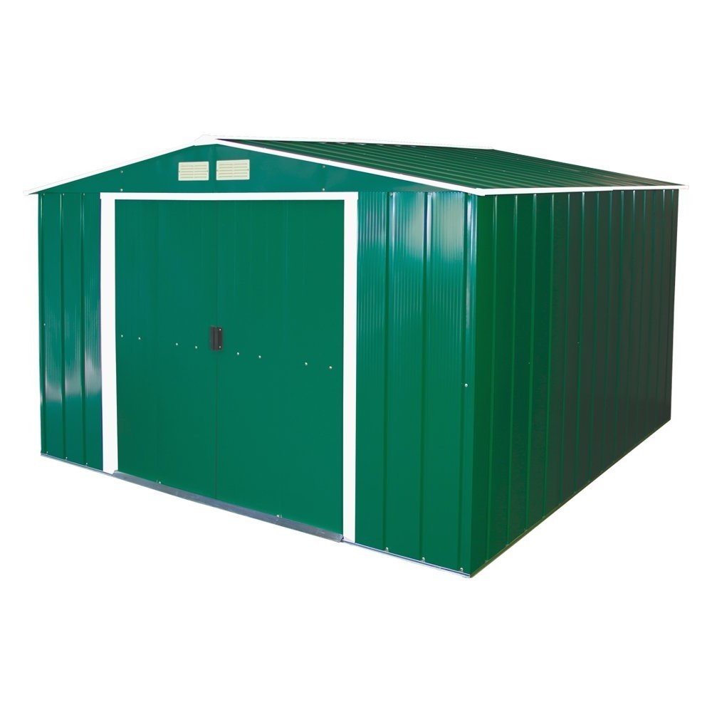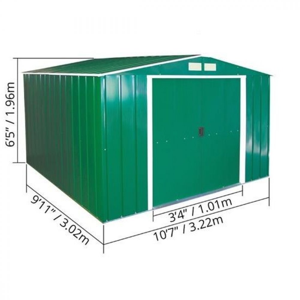 Potřebujete uskladnit zahradní nářadí či další věci, které jsou nutné pro práci na zahradě? Malý zahradní domek DURAMAX Zahradní domek COLOSSUS ECO XL, zelený o velikosti 321 × 302 × 196 cm je perfektní volbou pro uložení všech potřebných věcí. Materiálem, ze kterého byl zahradní domek vyroben je kov a pozinkovaná ocel. Krycí funkci u tohoto domku plní sedlová střecha, která je sestavena ze dvou s...