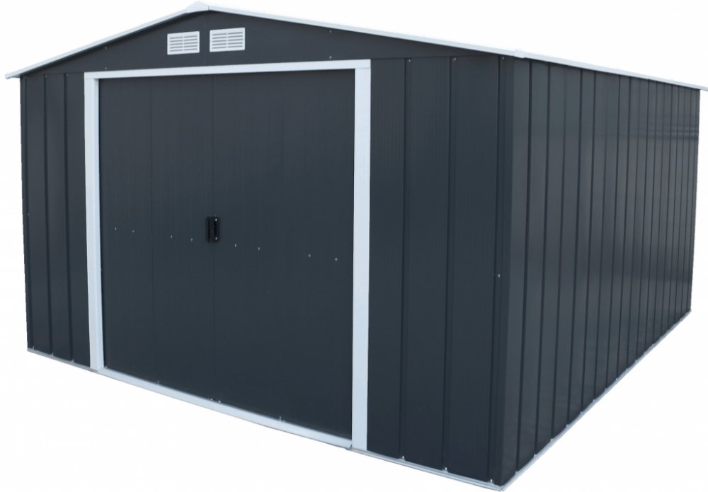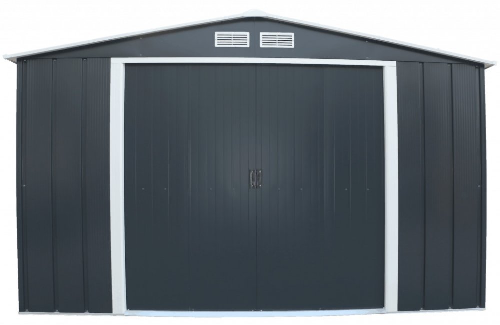 Duramax plechové antracitové sedlové dvoukřídlé 0.26 mm 10.5 m² 11.6 m² 322 cm 363 cm 308 cm 343 cm
