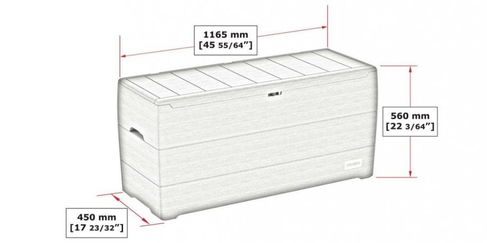 Technické parametry úložného boxu: rozměry: 117 x 45 x 58 cm