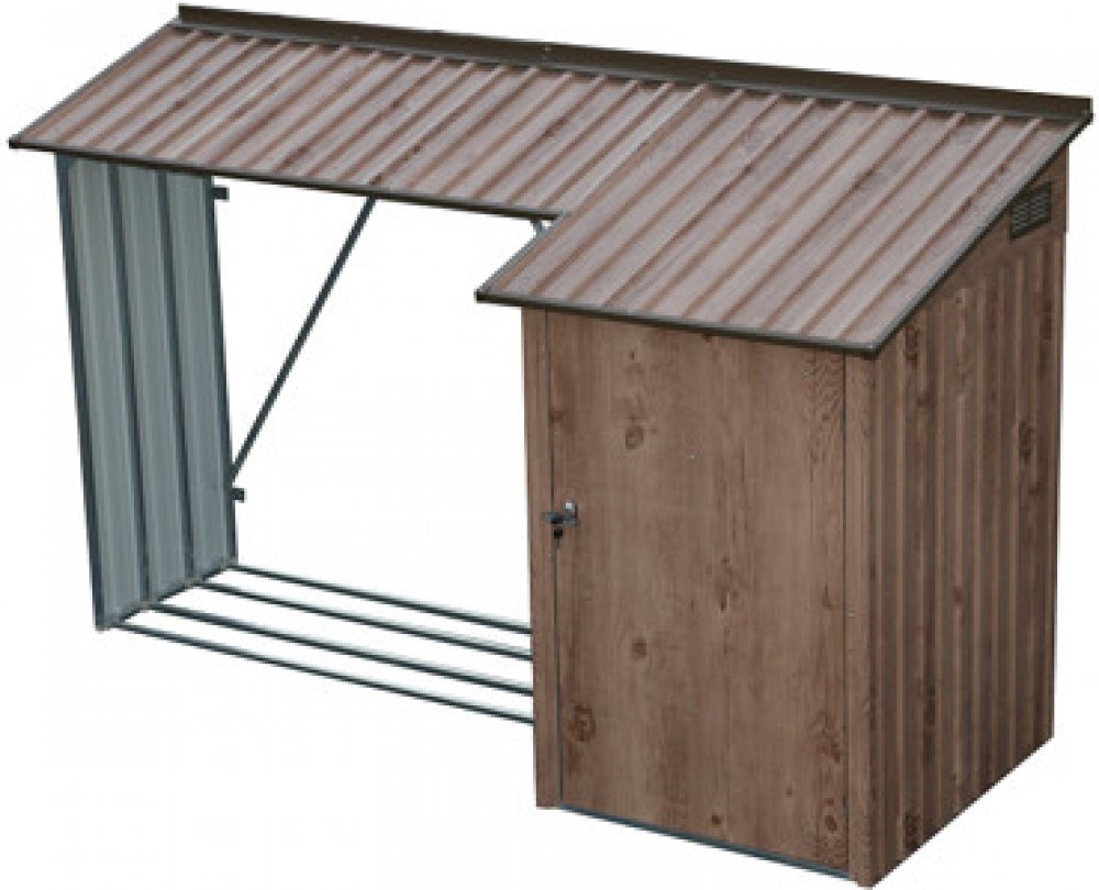 Přístřešek na dřevo s kůlnou značky DURAMAX Je vyroben stejně jako všechny výrobky od této značky ze žárově zinkovaného plechu opatřeného práškovým nástřikem o celkové síle 0,4 mm. Z tohoto důvodu platí i na přístřešek záruka 15 let na prorezivění.
