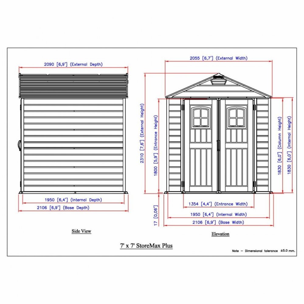 Rozměry antracitového domku STOREMAX Plus 7x7´: vnější šířka: 211 cm