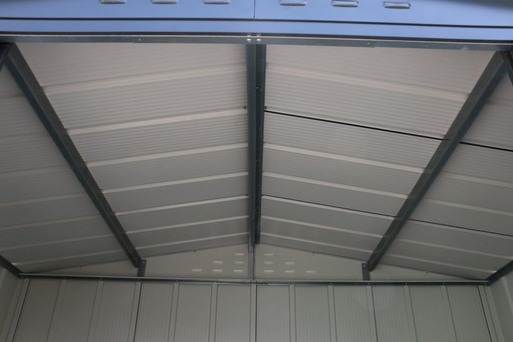 Duramax Kovový zahradní domek na nářadí Titan TOP 4,7 m2 - antracit. Jedná se o výprodejový kus - několik dílů má mírné kosmetické poškození. Plná funkčnost i zásuka. Odolnost vůči vlivům počasí a velmi dlouhá životnost řadí antracitový úložný zahradní domek Duramax Titan TOP 4,7 m2 k top domkům ve své kategorii. Duramax využil svých letitých zkušeností a v rámci inovací vyvinul speciální vysoce odolný nátěr. I díky tomu teď může poskytovat na zahradní domek TITAN TOP v antracitovém provedení prodlouženou záruku proti prorezivění v délce 20 let. Tento domek je jinak vyroben z ocelového, žárově pozinkovaného plechu s práškovým nástřikem a nevyžaduje žádnou údržbu.Dvoje velké posuvné dveře s úchyty, které je možno opatřit visacím zámkem a vysoký dveřní otvor umožňují pohodlný přístup. Jedná se tak o ideální a cenově výhodné místo na ukládání zahradního nářadí, zahradního nábytku, sekaček, křovinořezů, sportovního náčiní a mnohého dalšího. Jednoduchá montáž s podrobným návodem a vyobrazením zabere cca 3 hodiny (nutné 2 osoby).Barevné provedení: antracitBezpečný při maximálním zatížení střechy sněhem do 90 kg/m2.Síla plechu nosné konstrukce 0,5 mm SEC = nejsilnější tloušťka z podobných domků na českém trhu!Síla plechu opláštění domku 0,33 mm ZÁRUKA PROTI PROREZIVĚNÍ 20 LET! Rozměry antracitového zahradního domku Titan TOP 4,7 m²: zastavěná plocha: 4,7 m2 čistá vnitřní podlahová plocha: 4,1 m2 rozměry základů: šířka 251 cm, hloubka 172 cm rozměry vnější: šířka 261 cm, hloubka 182 cm, výška 202 cm rozměry vnitřní: šířka 245, hloubka 168 x výška 202 cm dveřní otvor: 105 x 160 cm hmotnost: 70 kg celková hmotnost balení: 80 kg vnitřní objem: 8,3 m3 dodáváno v kartonovém obalu o rozměrech 175 x 72 x 15 cm K domku doporučujeme zakoupit podlahovou konstrukci na kterou lze připevnit rám domku. Při použití této konstrukce tak není třeba pro domek připravovat specielní základovou desku, či betonovat základy a domek můžete umístit na jakoukoliv rovnou plochu (tráva, hlína, štěrk,...). Použítím základny se domek výrazně zpevní.Na konstrukci je poté možné připevnit libovolnou podlahu (OSB desky, překližka, prkna...)