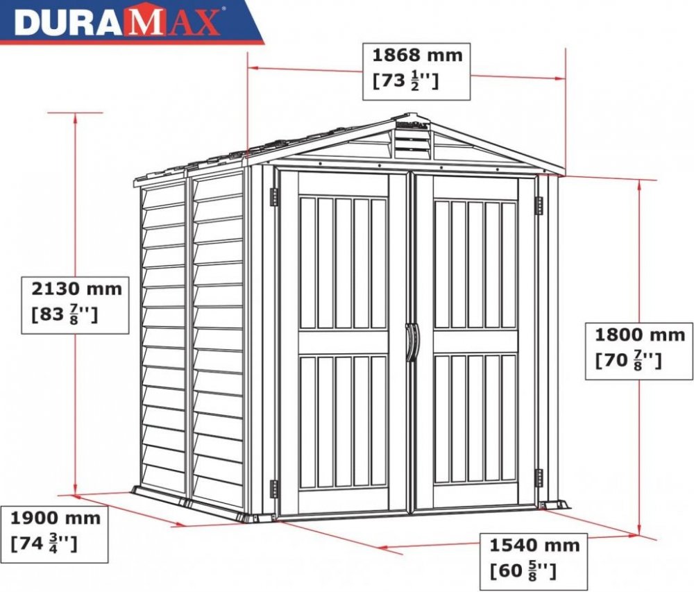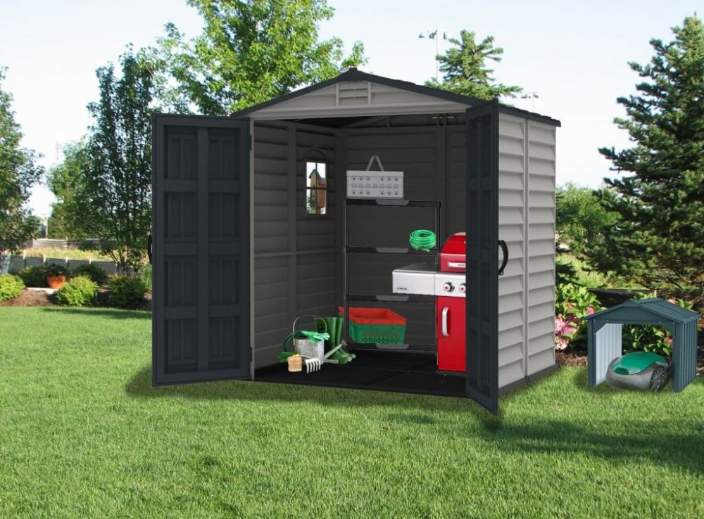Plastové zahradní domky Duramax představují cenově výhodné řešení pro ukládání zahradních potřeb: nábytku, sekaček a křovinořezů, hraček nebo sportovních potřeb, grilů a grilovacího náčiní, nebo třeba palivového dřeva. Plastové domky Duramax jsou vyrobeny ze zcela bezúdržbového vinylu, jejich konstrukce je navíc vyztužena ocelovými profily, zaručujícími maximální stabilitu. Domek je dodáván včetně podlahového panelu. Pohodlný přístup do plastových domků Duramax zajišťují široké jedno nebo dvoukřídlé dveře. Pokud chcete maximální prostor, maximální životnost a maximální stabilitu, rozhodněte se pro plastové zahradní domky Duramax.