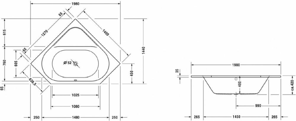 Duravit akrylátové rohové do pravého rohu bílé 140 cm 42 cm 140 l 140 cm