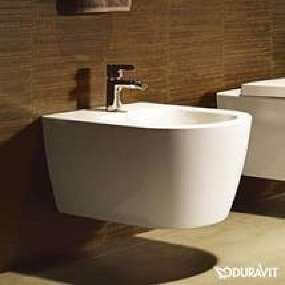 Duravit ME by Starck - Závěsný bidet s přepadem, 370 mm x 570 mm, bílý 2288150000 s plochou pro armaturu včetně upevnění Durafix hmotnost: 21 kg WonderGliss Ochranná keramická vrstva, která zachovává předměty obzvlášť dlouho pěkné a čisté. S vodou, která vytváří husté kapky, odtéká rovněž špína a povlak. Výsledek: méně usazenin, méně čištění - větší požitek z koupele.