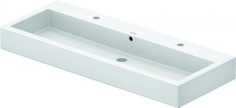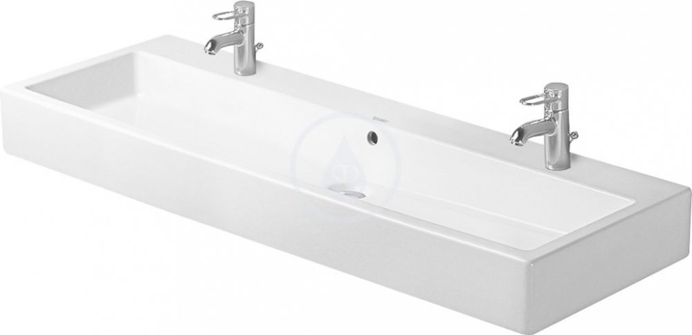 Duravit Vero - Dvojumyvadlo pro jednootvorové baterie, broušené, 1200 mm x 470 mm, bílé - dvojumyvadlo 0454120026 s plochou pro 2 jednootvorové baterie rozměr: 1200 mm x 470 mm. Duravit Vero - Dvojumyvadlo pro jednootvorové baterie, broušené, 1200 mm x 470 mm, bílé s přepadem s plochou pro armaturu hmotnost 33,5 kg Ve spojení s excentrickým ventilem prosíme nepřekračovat výkon průtoku max. 7,5 l/min. na armaturu. Rozestup otvorů pro armaturu činí 465 mm při využití dvou jednootvorových armatur. WonderGliss: Ochranná keramická vrstva, která zachovává předměty obzvlášť dlouho pěkné a čisté. S vodou, která vytváří husté kapky, odtéká rovněž špína a povlak. Výsledek: méně usazenin, méně čištění.