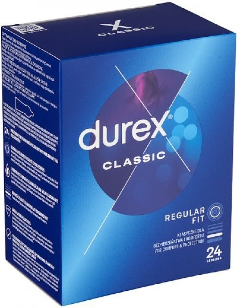 Loga třetí strany: Značka CE - Značka Evropské konformity Loga třetí strany: Zdravotní pomůcka Loga třetí strany: Na jednorázové použití Standardizovaná značka: Durex Druh balení: Krabice