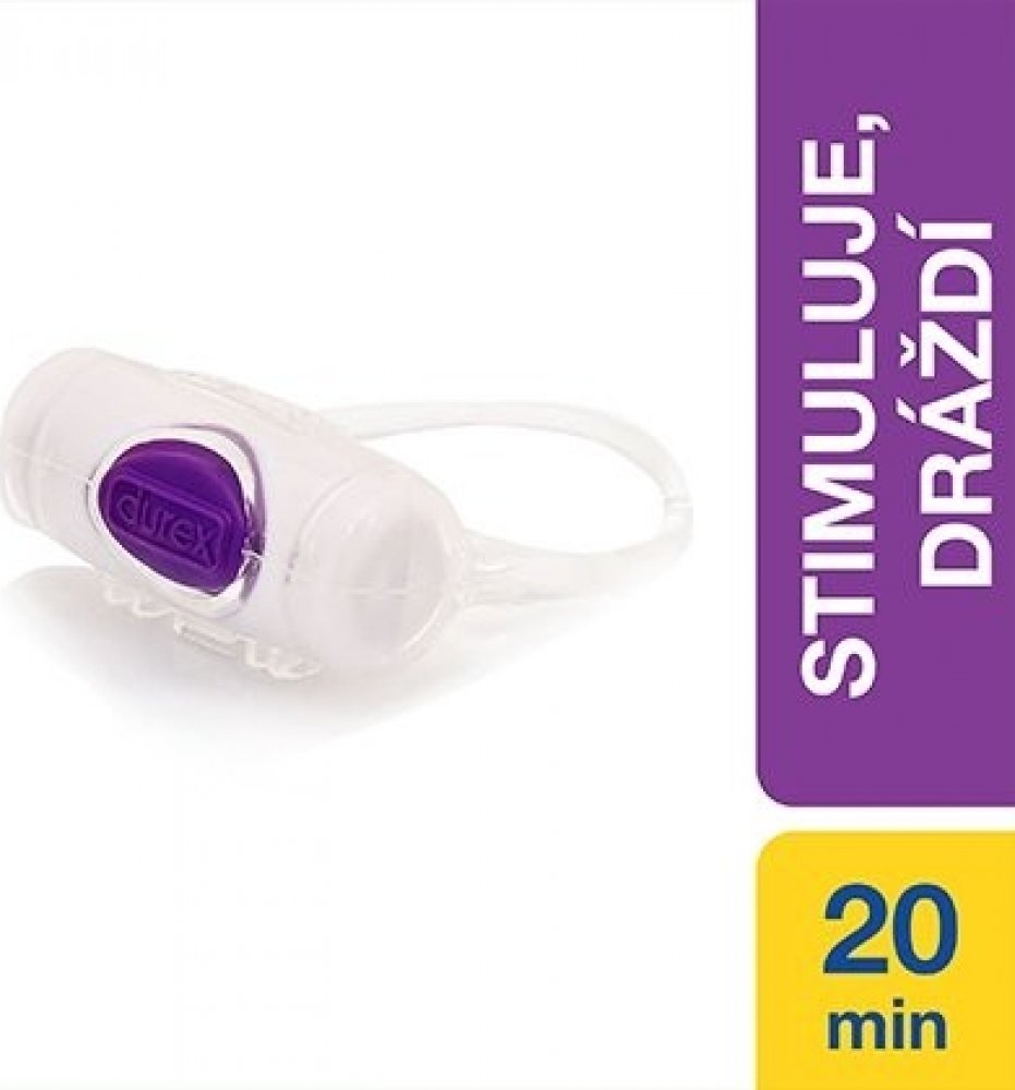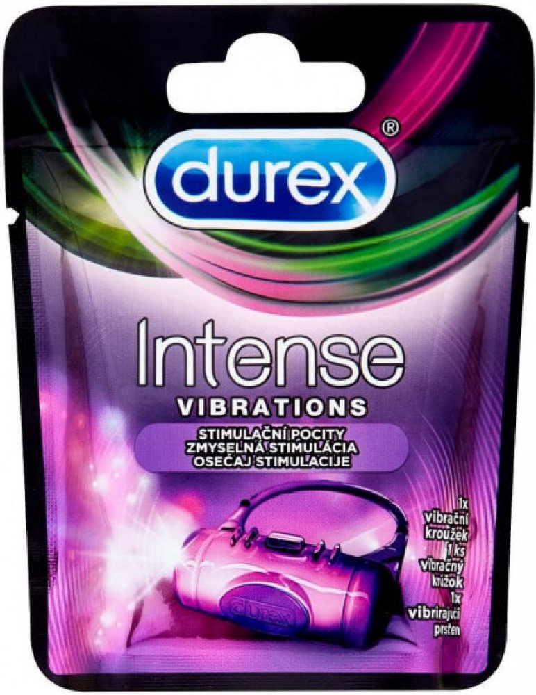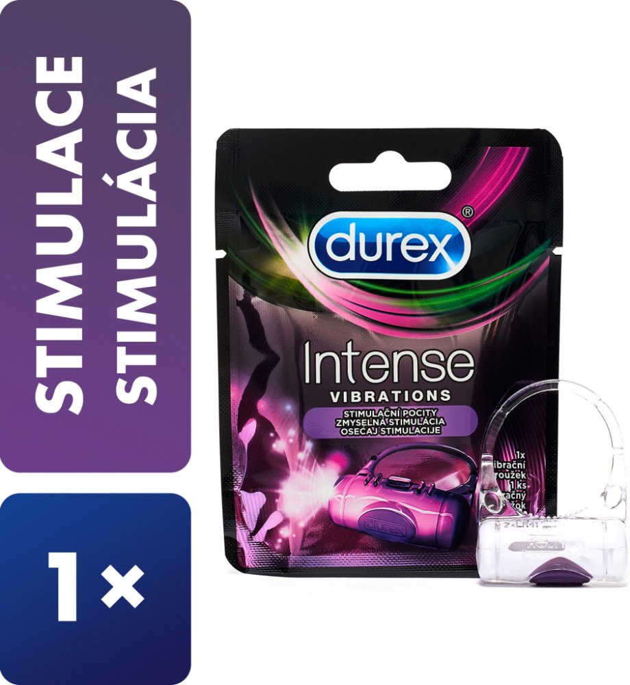 Vibrační kroužek Durex Intense Vibrations nabízí fantastický způsob, jak při sexu zvýšit potěšení a uspokojení obou partnerů. Výjimečně elastický kroužek se snadným použitím, který díky až 20 minutám stimulujících vibrací zlepšuje sex a předehru. Značka Durex představuje světovou jedničku, která má 80 let zkušeností v oblasti sbližování párů a zkvalitňování jejich milostného života jak v ložnici, tak i mimo ni. Jako první uvedla na trh lubrikované kondomy a také jako první začala jejich kvalitu testovat elektronicky. Stejně tak v roce 1960 jako první uvedla na trh anatomicky tvarovaný kondom. Jejím produktům dnes důvěřují páry ve 42 zemích světa. Všechny kondomy i ostatní produkty jsou vyráběny výhradně z nejkvalitnějších surovin a každý výrobek je podroben náročným testům. Těmi samozřejmě prošel také vibrační kroužek Intense Vibration, který dráždí, vzrušuje a uspokojuje oba partnery zároveň. Ještě příjemnějšího zážitku s tímto produktem dosáhnete ve spojení s lubrikačními gely Durex Play nebo Durex Play Massage 2 v 1. Kroužek lze použít s kondomem z přírodního latexu nebo bez něho. Do portfolia značky dále patří masážní a lubrikační gely, kondomy či hračky, které ze sexu činí ještě větší potěšení a zábavu. Kromě samotných produktů se věnuje také výzkumům v oblasti sexuálního chování a sexuální osvětě. Příprava a použití: Lze použít s kondomem nebo bez kondomu. Baterie přiložena. Bezpečnostní varování: Tento produkt je určen pouze pro dospělé osoby. Nejedná se o antikoncepční prostředek. Prostudujte si prosím příbalovou informaci umístěnou uvnitř tohoto balení.