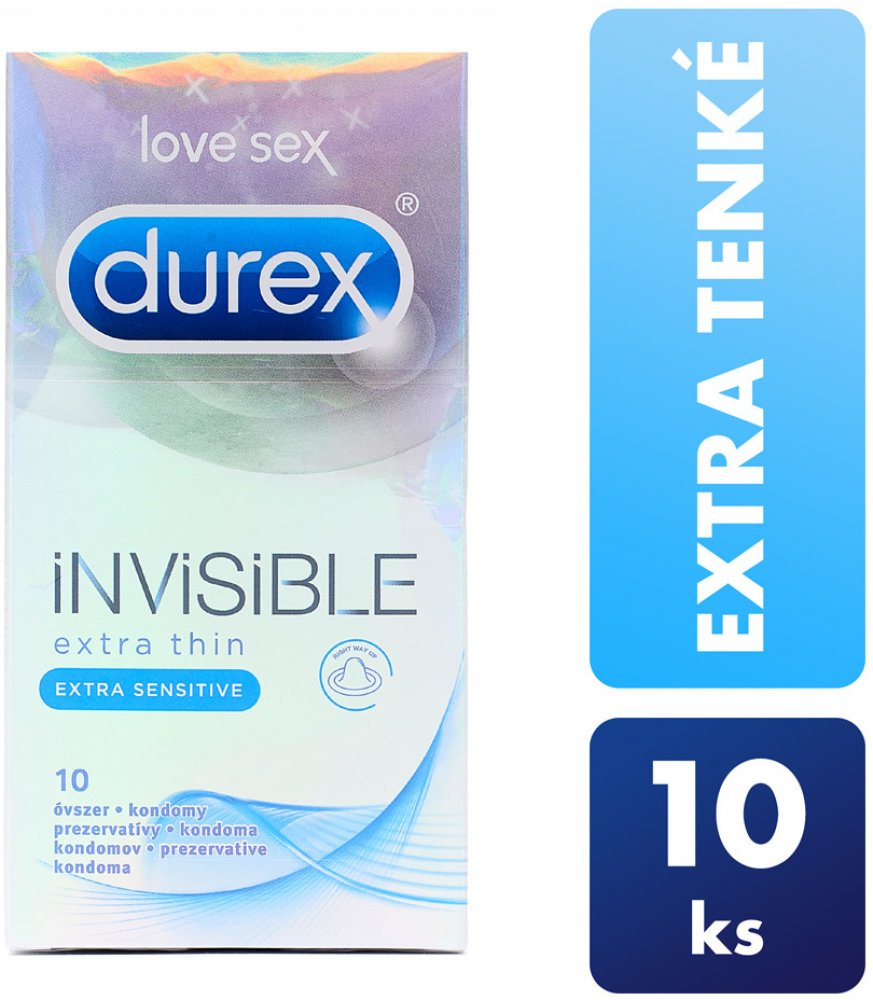 Durex Invisible Extra Thin Extra Sensitive kondomy extra tenké, extra citlivé 10 kusů