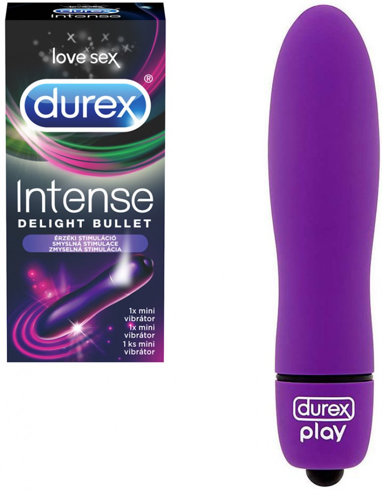 Zažijte nová vzrušení s hračkami pro potěšení řady Durex Intense a ještě více si užívejte své erotické zážitky (oproti nepoužívání jakýchkoli hraček). Mini vibrátor Durex - Play Delight. Jedná se o snadno ovladatelný a výkonný vibrátor s otočnou (postupnou) regulací vibrace. Vibrátor Play Delight se vyznačuje tichým chodem a příjemným povrchem. Neuvěřitelně snadné ovládání Vás bude svádět k intimním hrátkám. Mini vibrátor Durex - Play Delight Vás zavede na tajná místa, o kterých jen sníte.