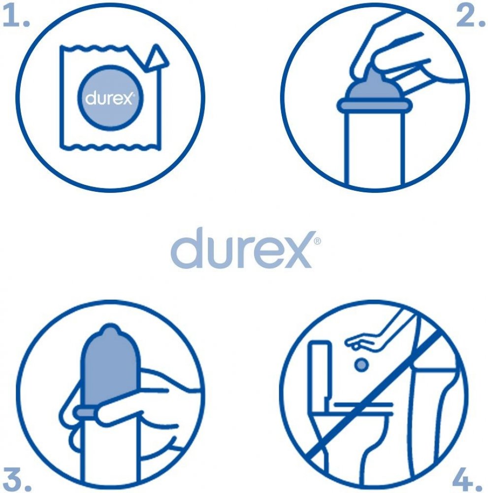 Kondomy Durex jsou zdravotnické prostředky určené k zabránění početí a ochraně před pohlavně přenosnými chorobami. Žádná antikoncepční metoda Vám nemůže poskytnout 100% ochranu proti otěhotnění, HIV či jiným pohlavně přenosným chorobám. Uchovávejte mimo dosah dětí. Kondomy jsou zdravotnickým prostředkem. Pečlivě si přečtěte návod na použití uvnitř krabičky, zejména pokud používáte kondomy pro anální nebo orální sex. Kondom je pouze na jedno použití.