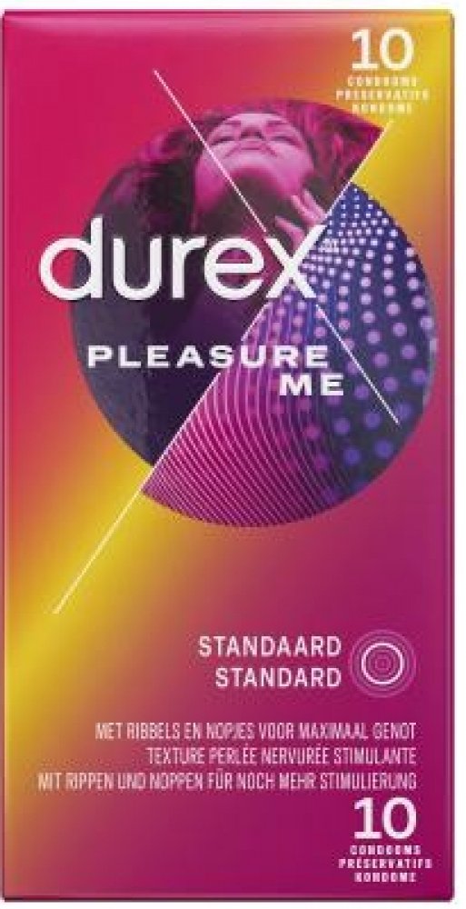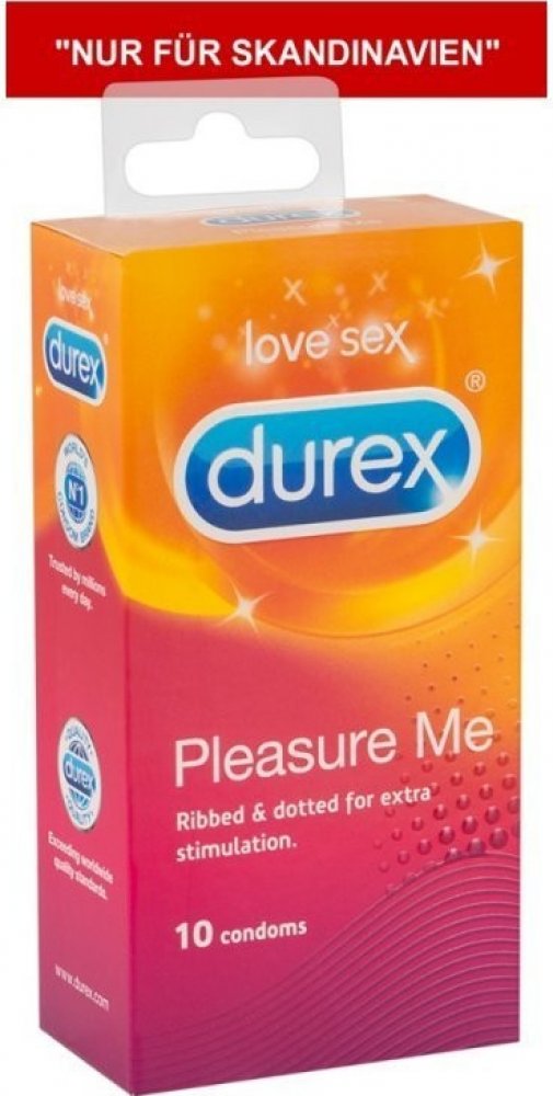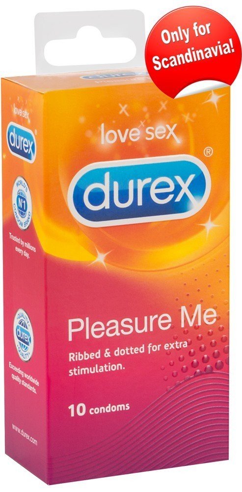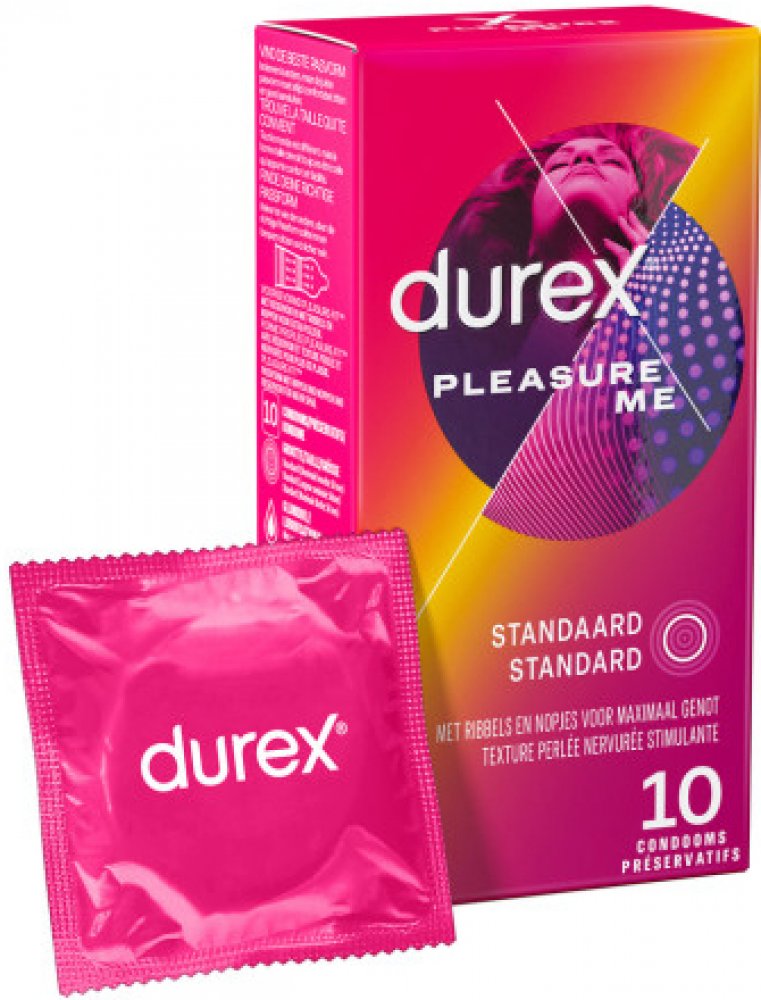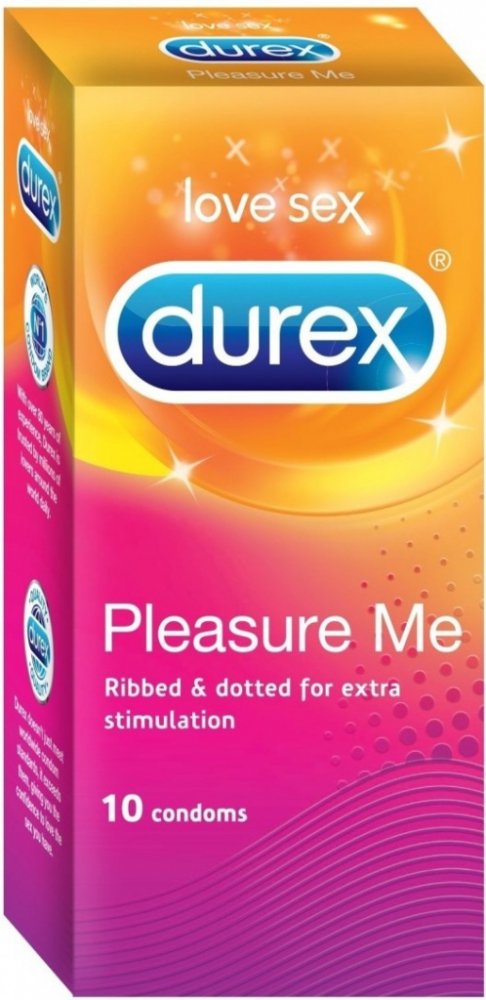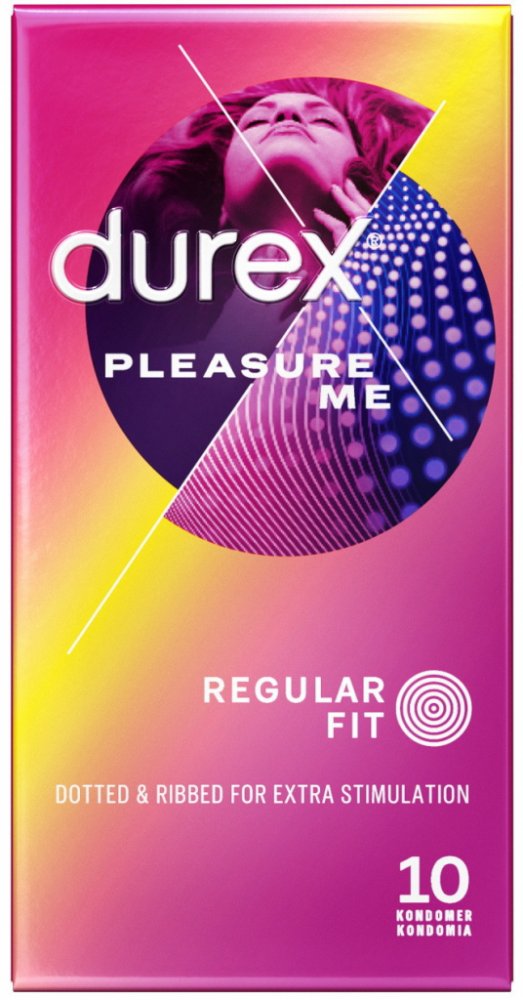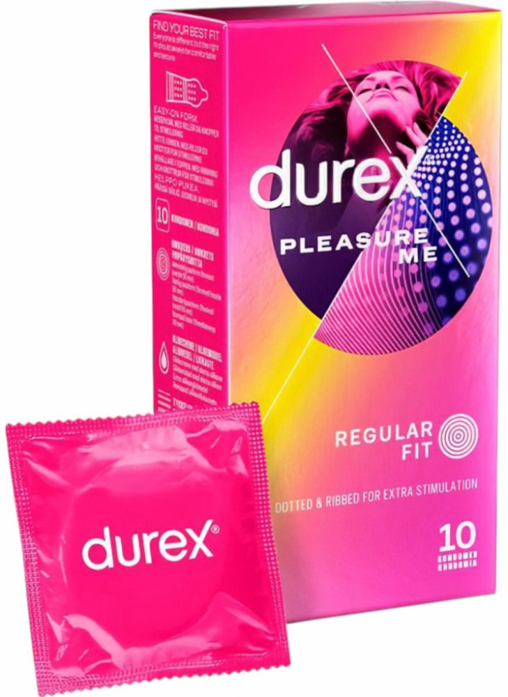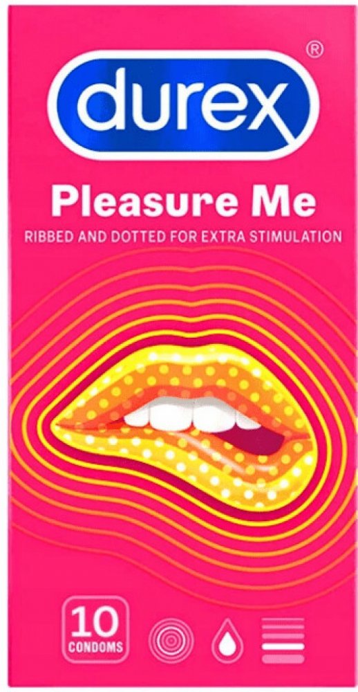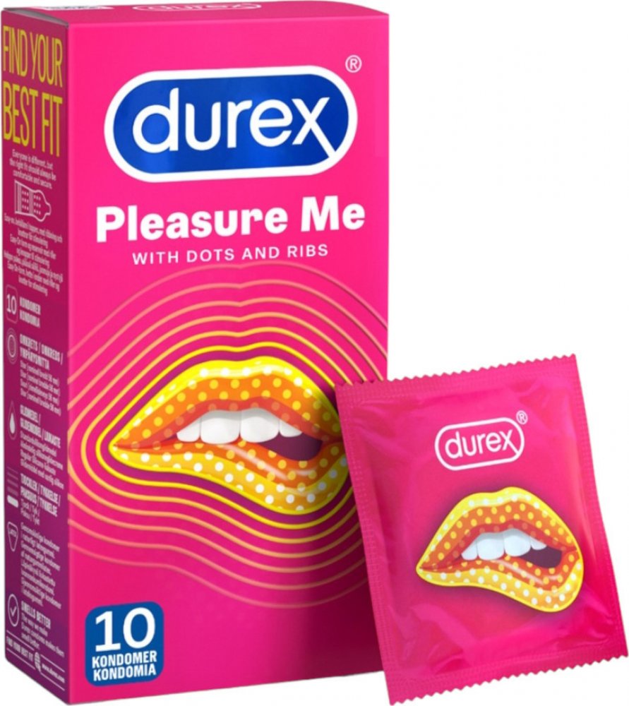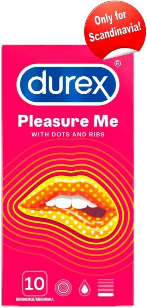 Durex Pleasure Me jsou kondomy speciálně navržené tak, aby vám poskytly maximální potěšení. Jedinečné uspořádání proužků a výstupků dodává pocitům mimořádnou intenzitu. Pokud hledáte extra potěšení, pak jsou tyto kondomy určeny právě vám! Mohu ke kondomům použít lubrikant? Přestože kondomy Durex jsou již dodávány s lubrikantem, můžete přidat další lubrikant, aby byl zážitek ještě příjemnější. Všechny lubrikanty Durex jsou s kondomy Durex kompatibilní TiB le. Mohou kondomy způsobovat alergie? Většina druhů Durex je vyrobena z přírodního latexu, ale pokud jste vy nebo váš partner na latex alergičtí, máme také řadu kondomů bez latexu, včetně Durex Real Feel a Durex Latex Free. Skladování: Skladujte na suchém, chladném místě mimo dosah přímého slunečního záření.