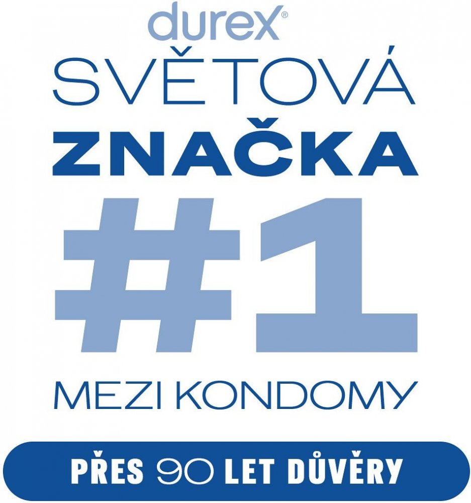 Kondomy Durex jsou zdravotnické prostředky určené k zabránění početí a ochraně před pohlavně přenosnými chorobami. Žádná antikoncepční metoda Vám nemůže poskytnout 100% ochranu proti otěhotnění, HIV či jiným pohlavně přenosným chorobám. Uchovávejte mimo dosah dětí. Kondomy jsou zdravotnickým prostředkem. Pečlivě si přečtěte návod na použití uvnitř krabičky, zejména pokud používáte kondomy pro anální nebo orální sex. Kondom je pouze na jedno použití.
