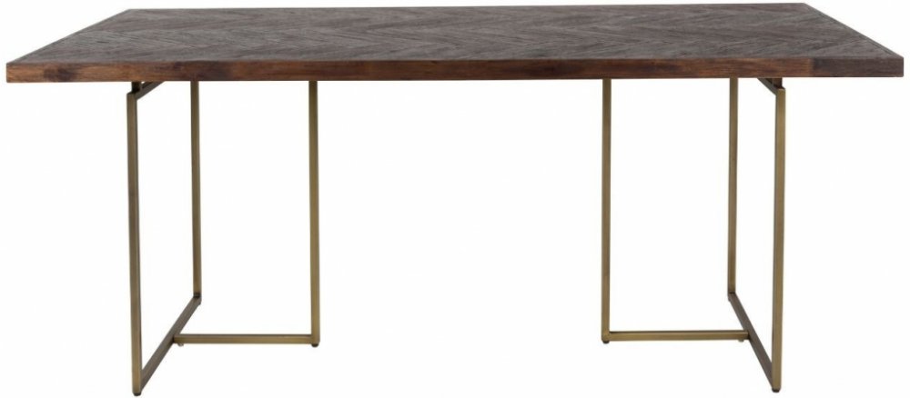 Hnědý jídelní stůl Class je tvořen dřevěnou deskou a elegantní podnoží v mosazném odstínu ve stylu vintage. Vrchní část stolu se vzorem rybích kostí je vyrobena z polotvrdé dřevovláknité desky, kterou z obou stran pokrývají tenké desky z akátové dýhy. Podnož je zakončena gumovými podložkami chránícími vaší podlahu před poškrábáním. Stůl můžete skvěle doladit s dalšími kousky ze série DUTCHBONE CLA...