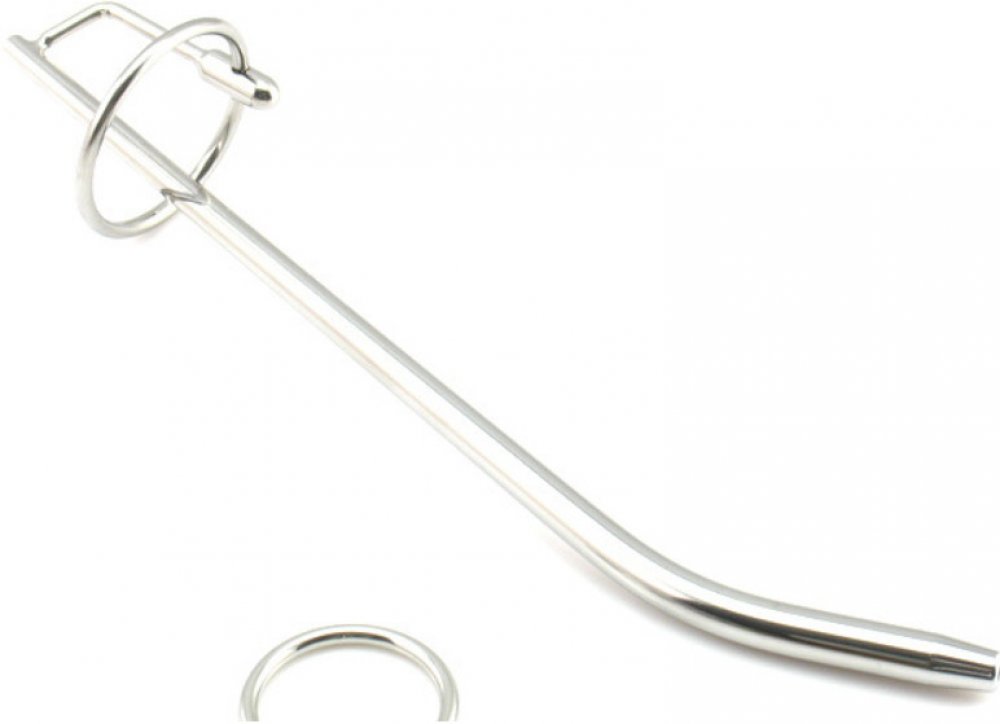 Přizvěte ke svým klinik hrátkám kovový dilatátor, který se bude v rukou partnerky vyjímat jako šperk a navodí ve vaší ložnici atmosféru urologické ordinace. Dilatátor skvěle dráždí močovou trubici a nenechá penis odpočívat ani na chviličku. A pokud se pánům nebo jejich madam podaří dilatátor zavést celý, zahnutá špička polaská i prostatu. Dilatátor je dutý po celé své délce, nebrání tedy spermatu nebo moči při cestě ven a tím přináší extrémní slast vašemu údu. Kroužek na vršku dilatátoru mužskou chloubu lehce zaškrtí, takže bude naběhlejší a citlivější k dotykům prsty nebo jazyka. Dilatátor je vyrobený z kvalitní nerez oceli. Tento materiál si vybírají pánové milující chladivý dotek kovu a klinik pomůcky, které evokují sterilitu lékařské ordinace.
